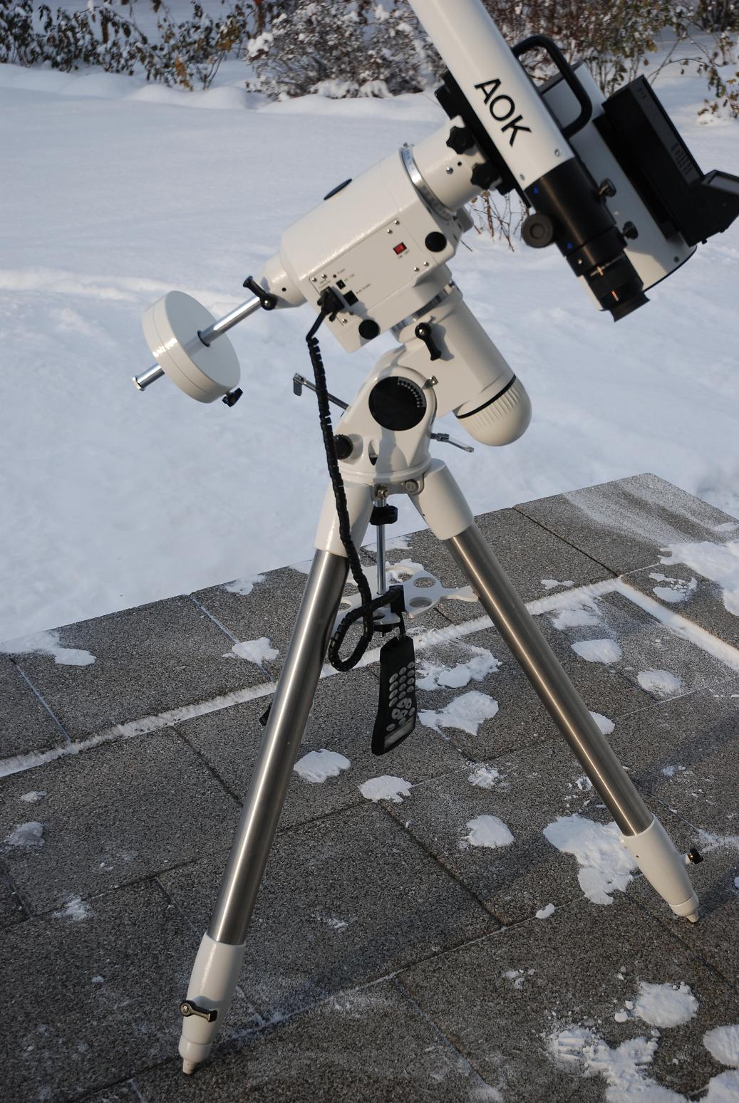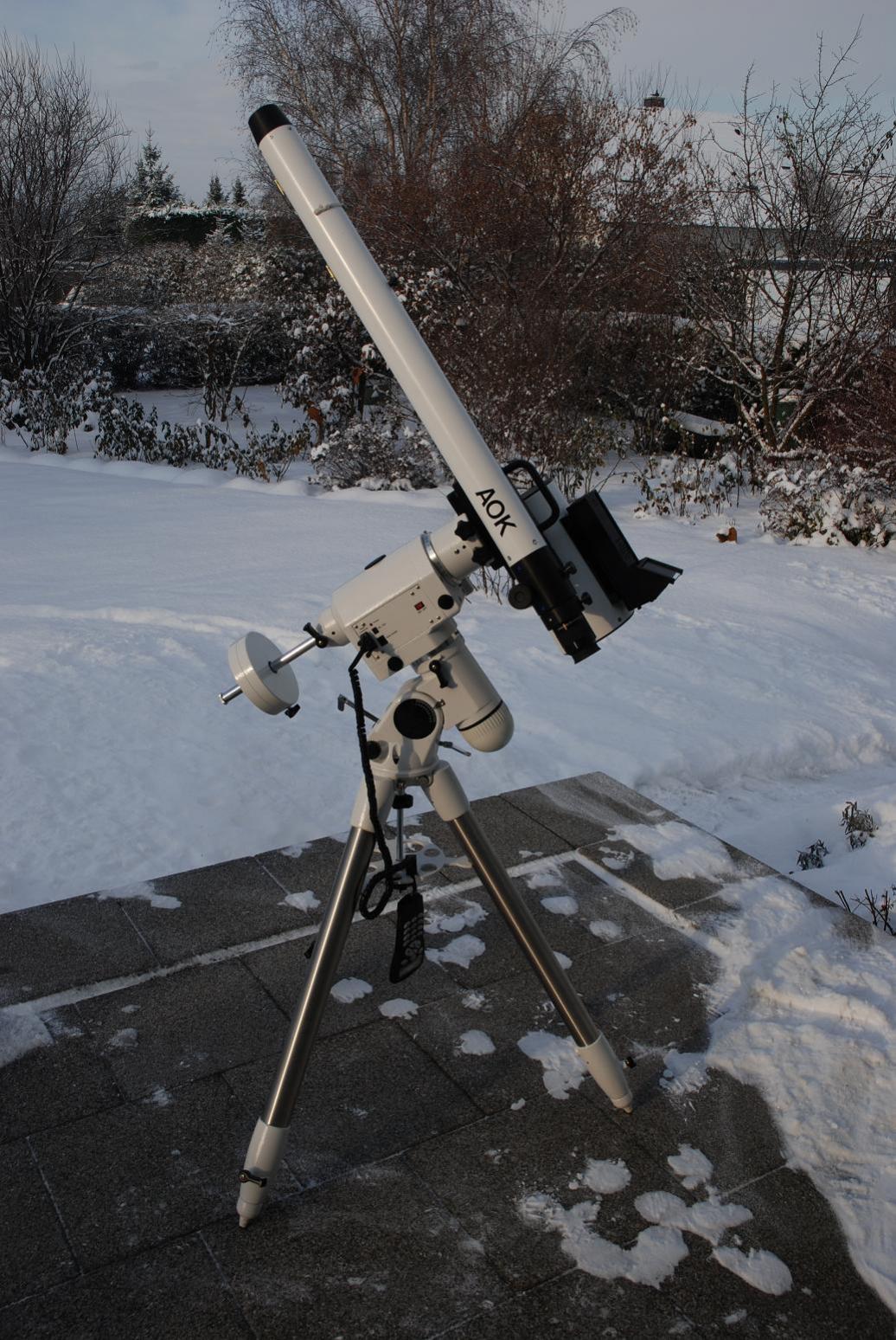 Es ist eine EQ-6 SkyScan, und schaut so aus - EQ6. Ist zwar auch eine mit Goto, wir finden die Objekte aber auch so.
