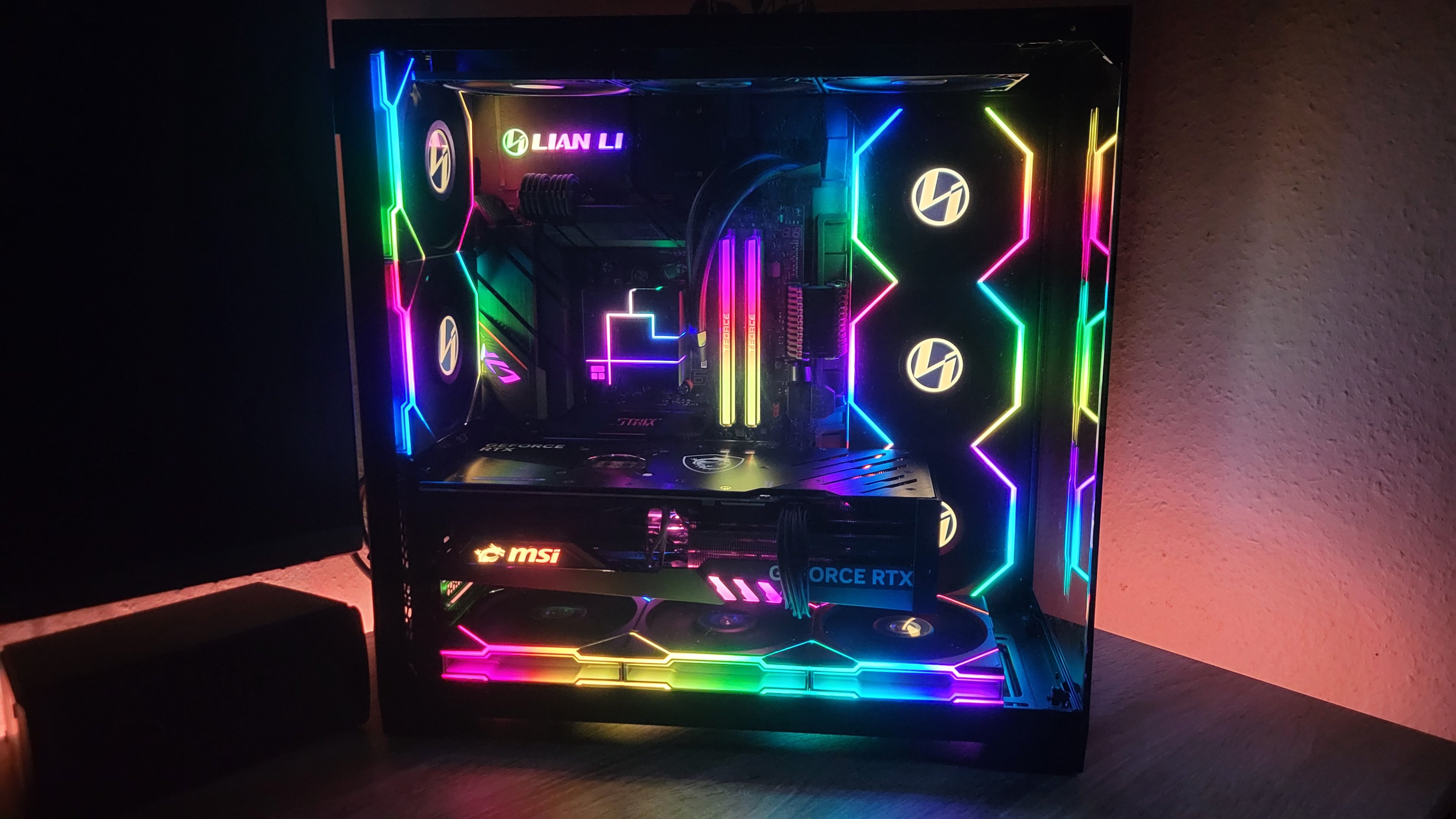 Die RGB Beleuchtung der Lüfter sind nur auf minimaler Helligkeit und sind damit nur akzentuiert.