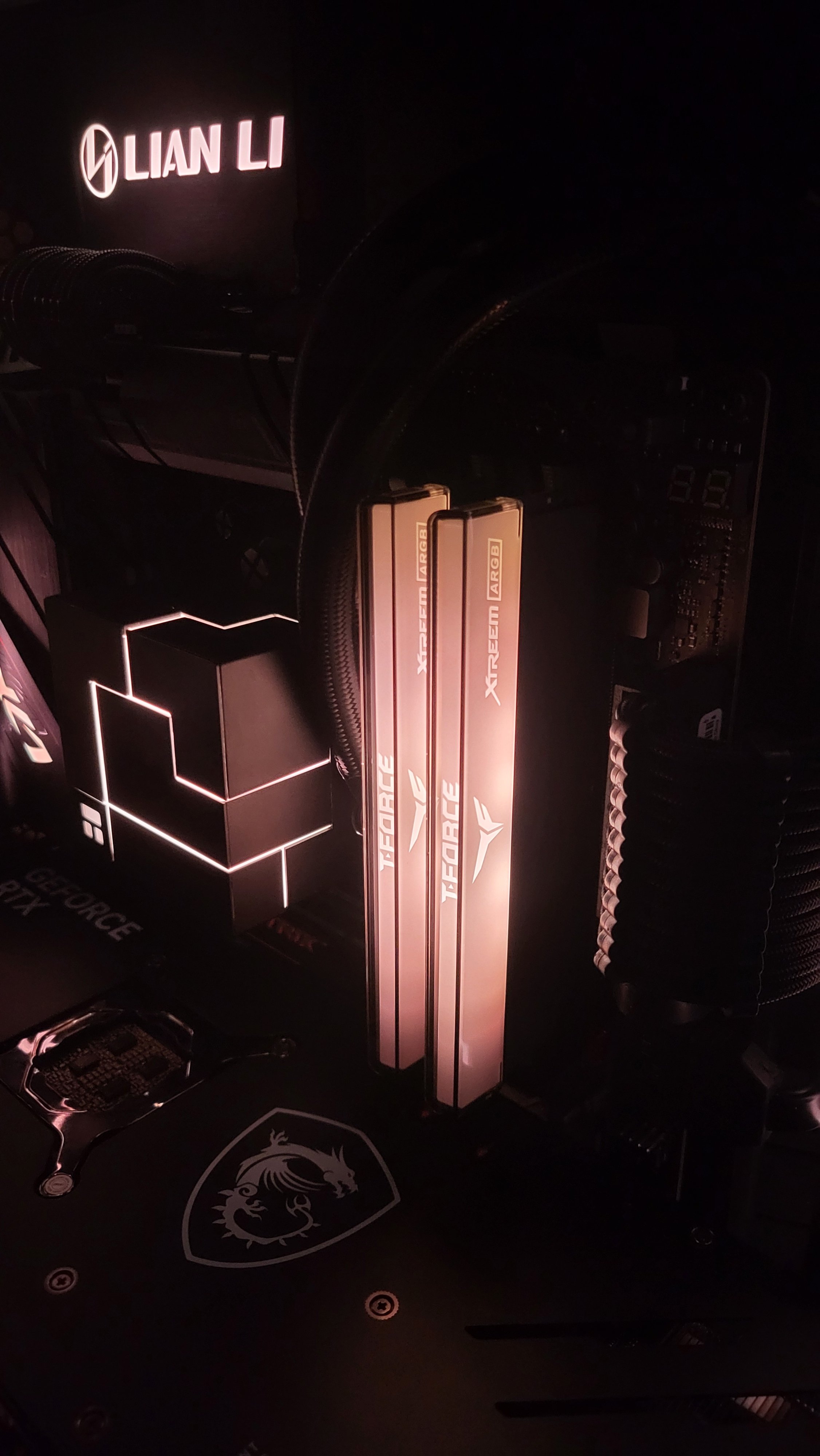 Der beleuchtete "AMD Radeon" Schriftzug auf der Graka dient z.B. auch dazu um eine ARGB Leitung etwas zu verstecken.