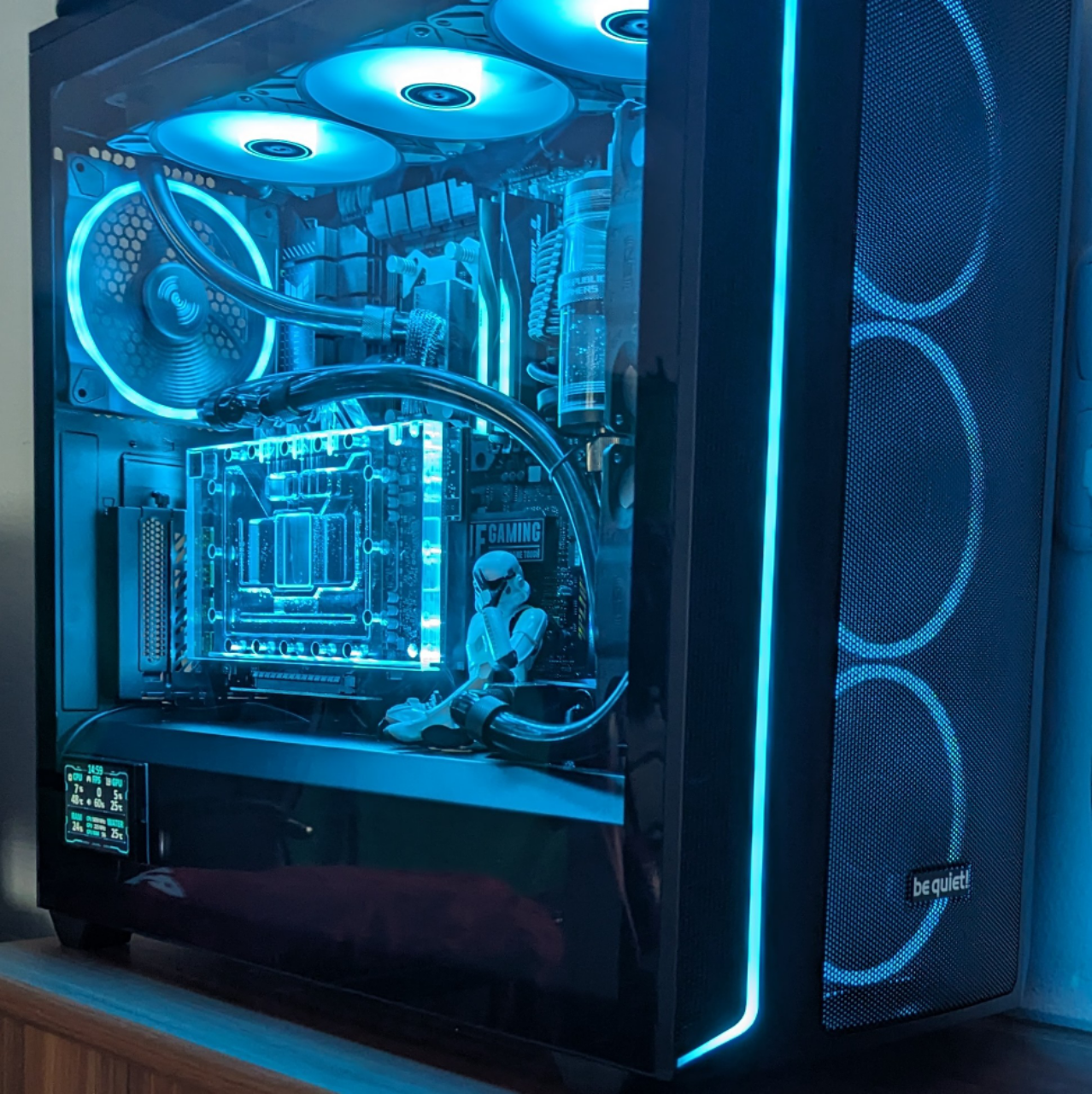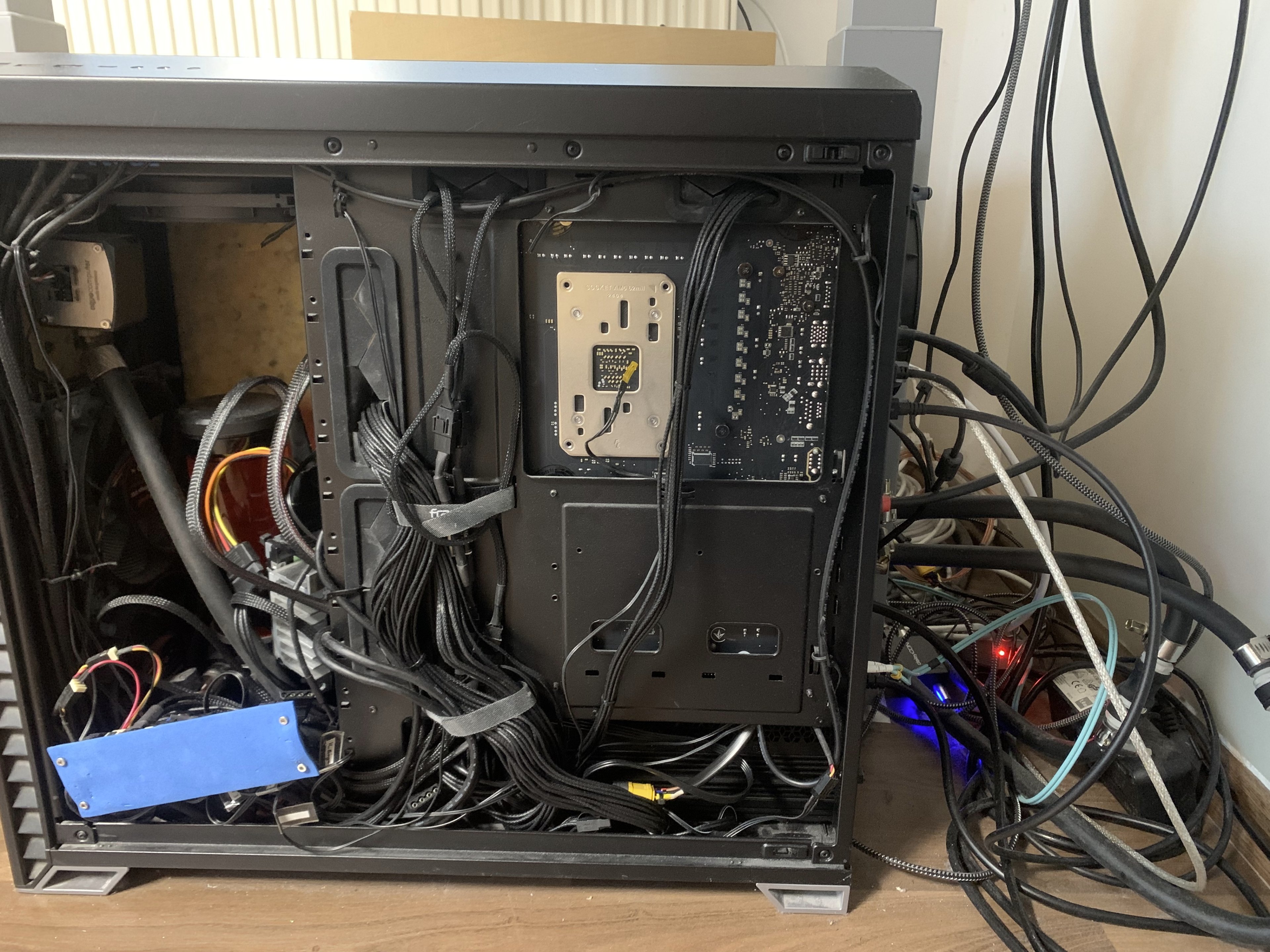 Da es kaum Gehäuse gibt, die man "auf links drehen" kann, hatte ich mich Ende 2024 von meinem treuen Freund dem Bitfenix Shinobi nach 10 Jahren verabschiedet. Habe mein Büro so umgebaut / gestellt, dass der PC nun links von mir steht und nicht mehr auf einem Rollbrett unterm Tisch. Mit Katzen ist man permanent am Sauber machen. Zu dem hat das Shinobi grade so Platz für die TUF Karte gehabt, die man mir günstig angedreht hat. Und von den Temperaturen möchte ich gar nicht erst sprechen. Föhn beschreibt es sehr gut, wenn er auf Last lief.