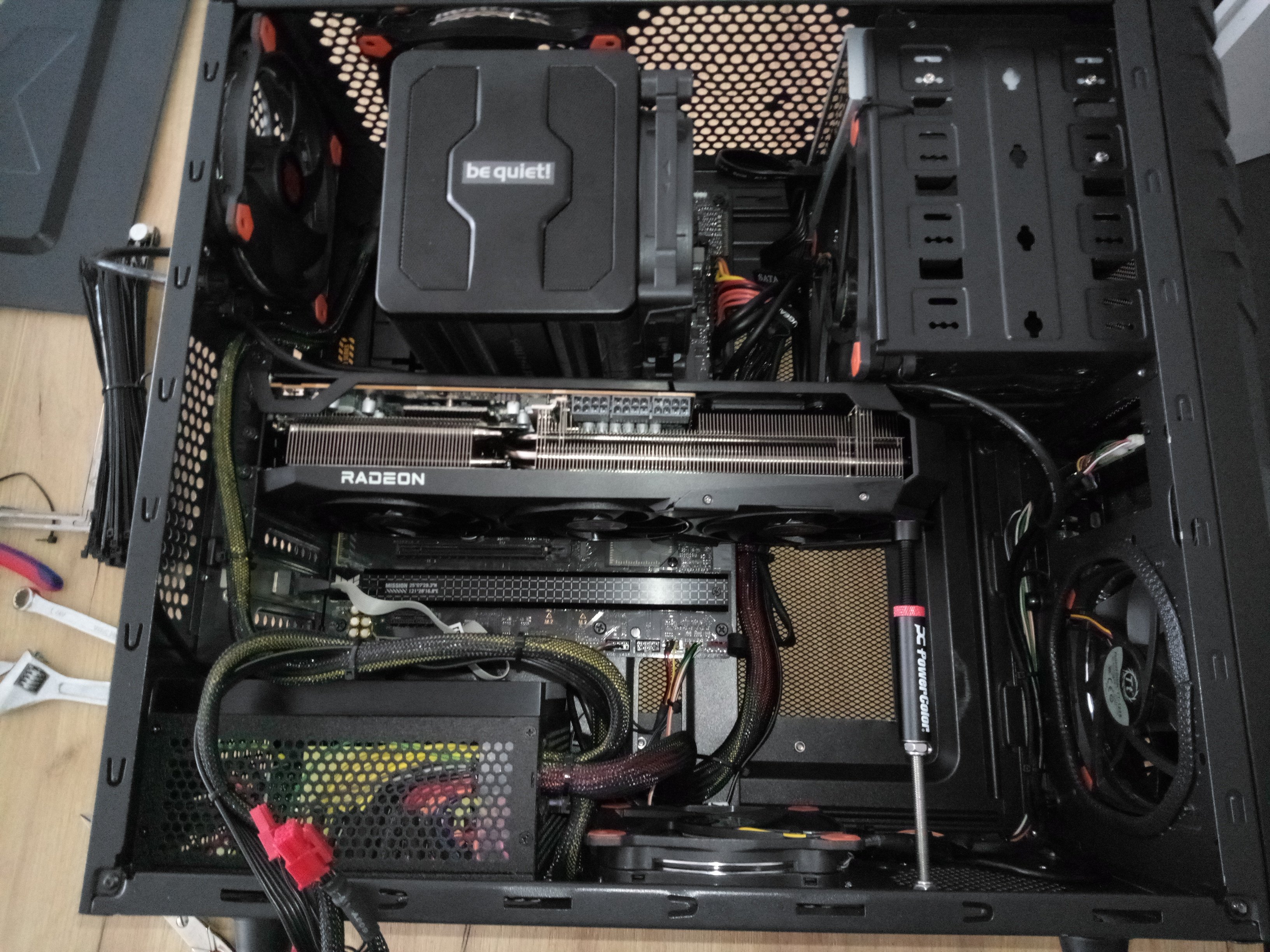 Kabel so gut es geht alles hintenrum das in Inneren nicht so viel rumgurkt, Stichwort "Airflow".