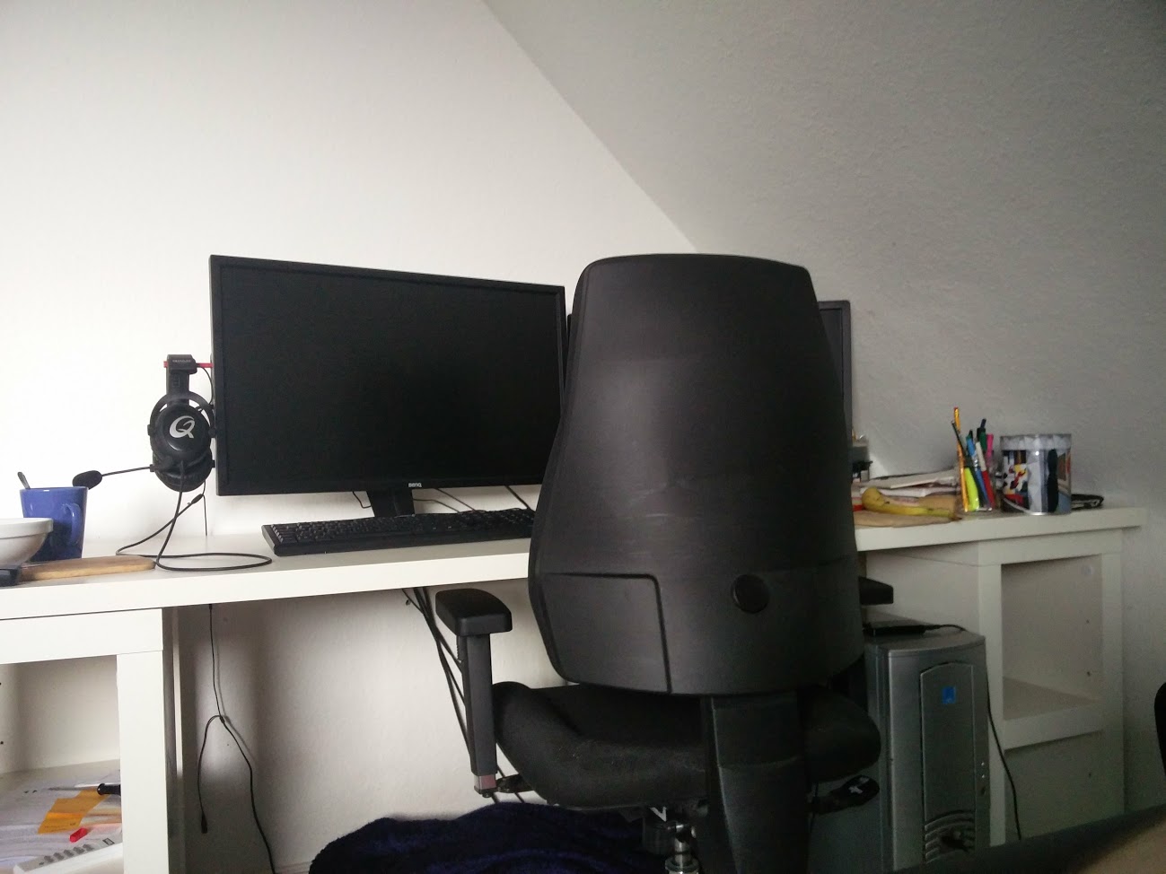 1. Ich habe keinen Platz auf dem Schreibtisch, um es rechts von mir hinzustellen, dank einer Dachschrägen. Für unter den Schreibtisch ist es allerdings zu klein und wäre total verschenkt.