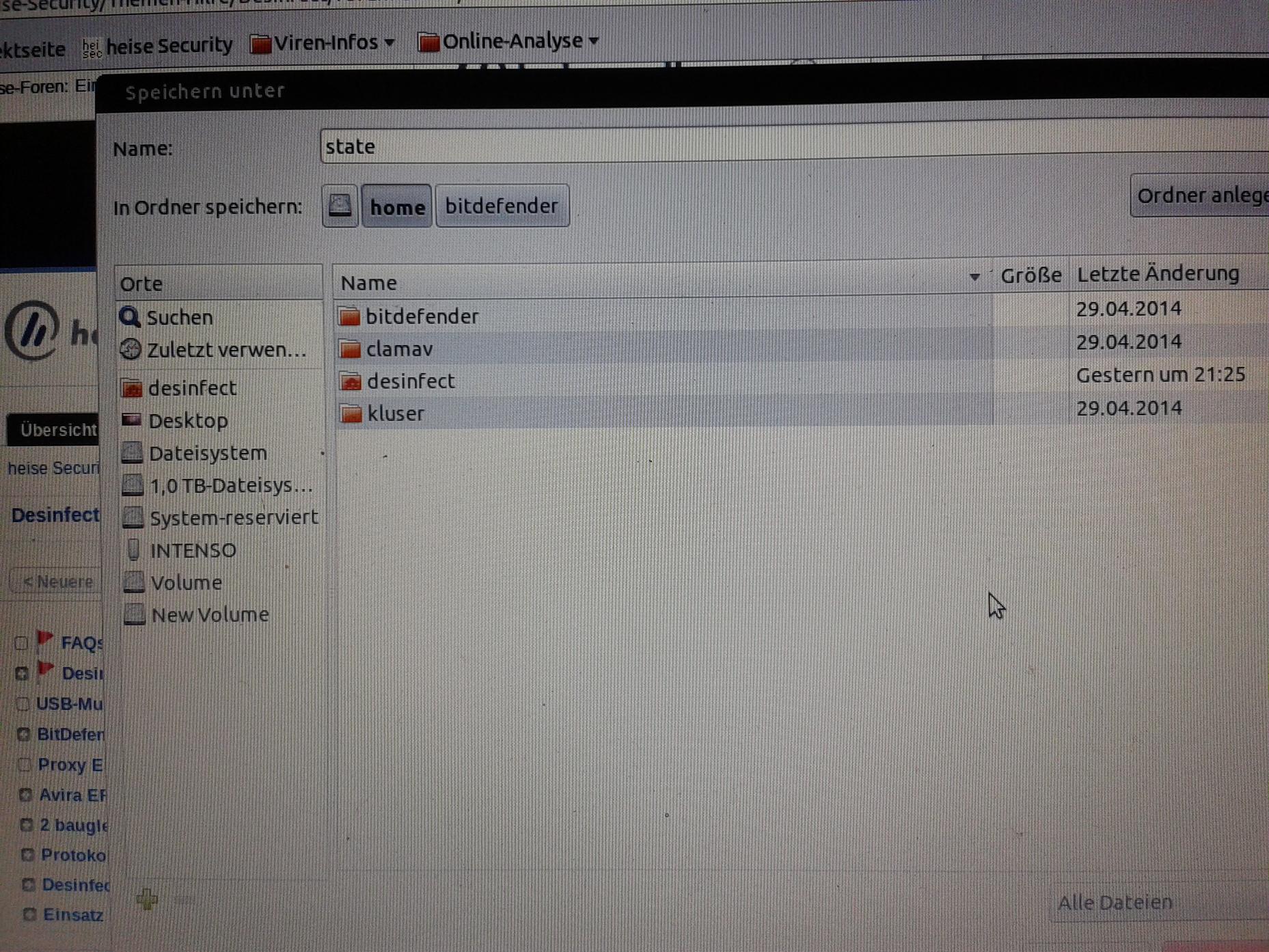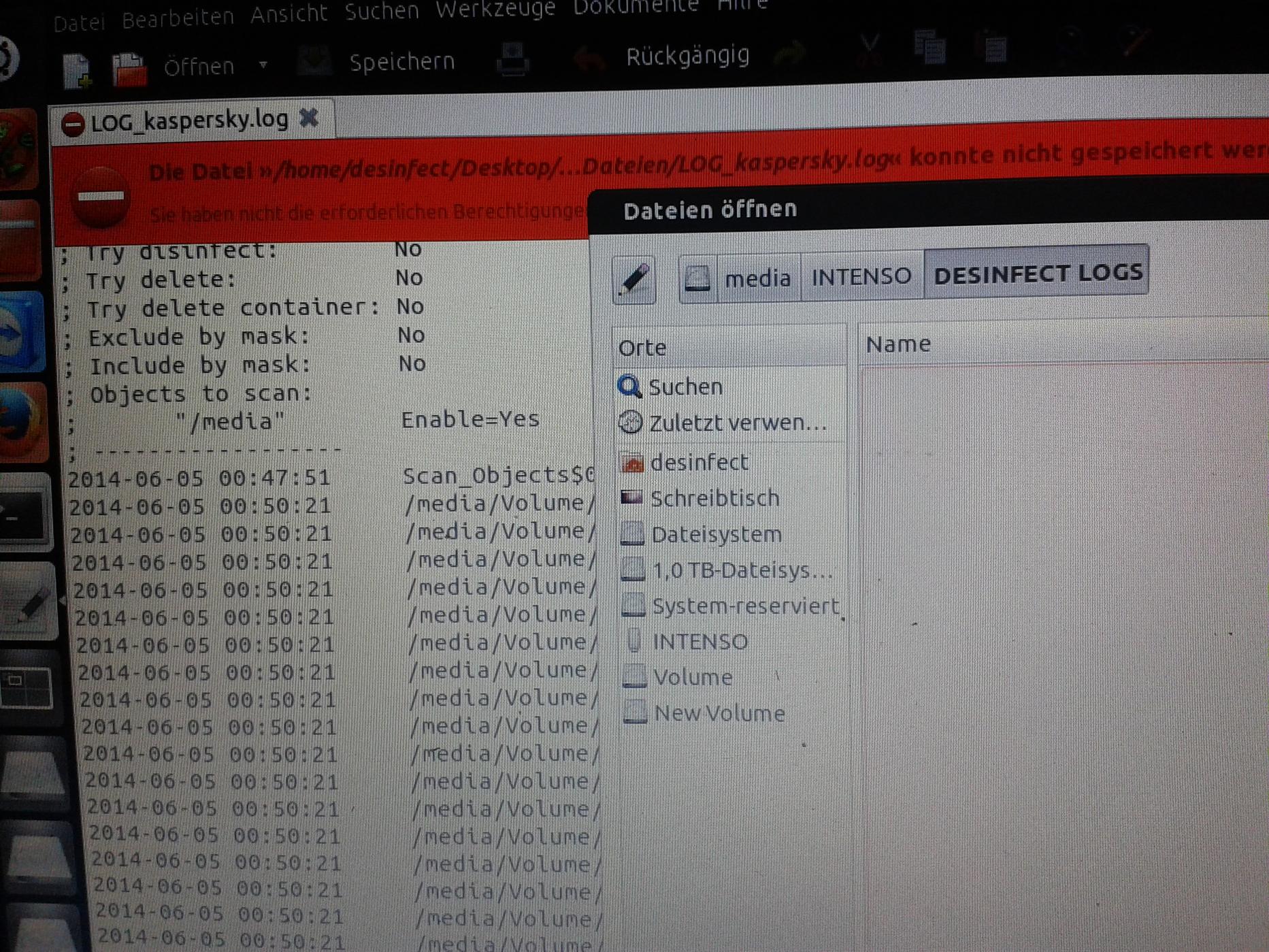 Nachdem ich mit Desinfect gescannt hatte auf meinen NOTEBOOK;möchte ich zur weiteren Begutachtung dies abspeichern und ins Forum stellen.Aber es kommt beim abspeichern,das ich keine Schreibrechte habe,nur Leserechte.Ich schreibe doch nichts und wenn ich die CD beende,sind wohl diese weg oder?Was soll ich machen?