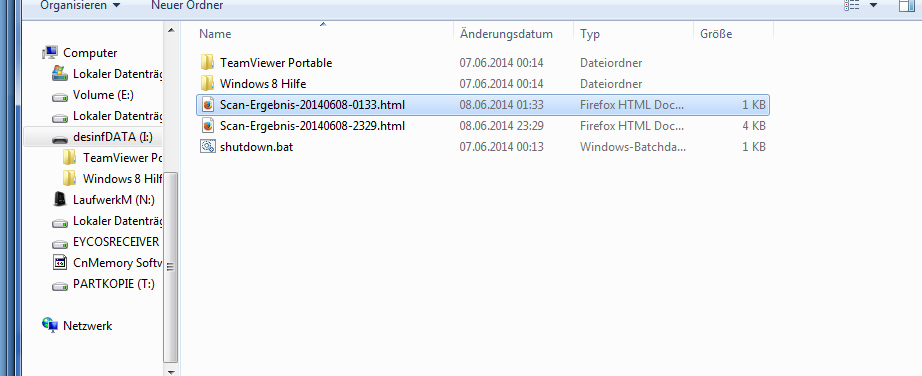 Normal öffnet sich doch ein Browserfenster (Firefox) wo die Zusammenfassung drinnen steht. Wichtig wäre zu wissen, falls es zu Fundmeldungen kam, welche Dateien genau betroffen waren und wie diese vom jeweiligen Programm eingestuft worden sind.