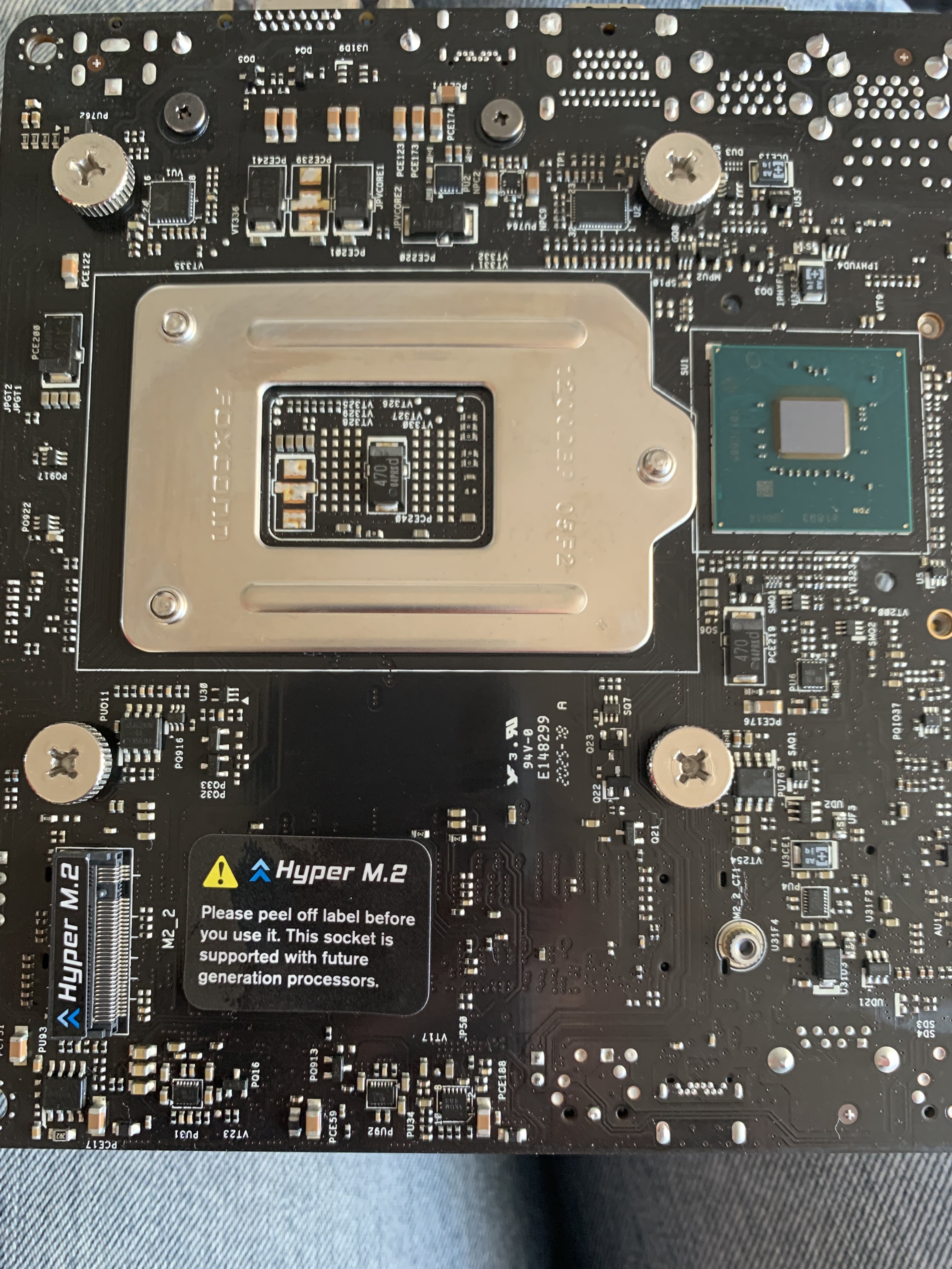 Einen 3. als „hyper“ benannten m2 Anschluss an der Unterseite, der in der Anleitung nicht erwähnt wird und der einen Aufkleber hat das wohl erst zukünftige Prozessoren diesen unterstützen...im Bios zeigt er den auch noch nicht an