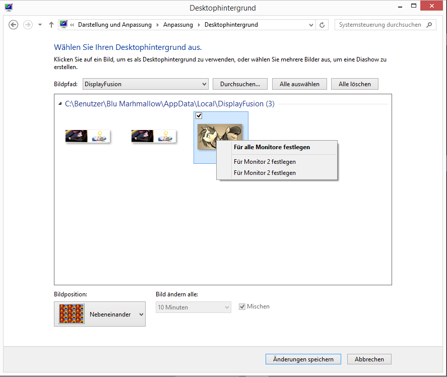 nur in den System Einstellungen zur Desktop Hintergrund Wahl,