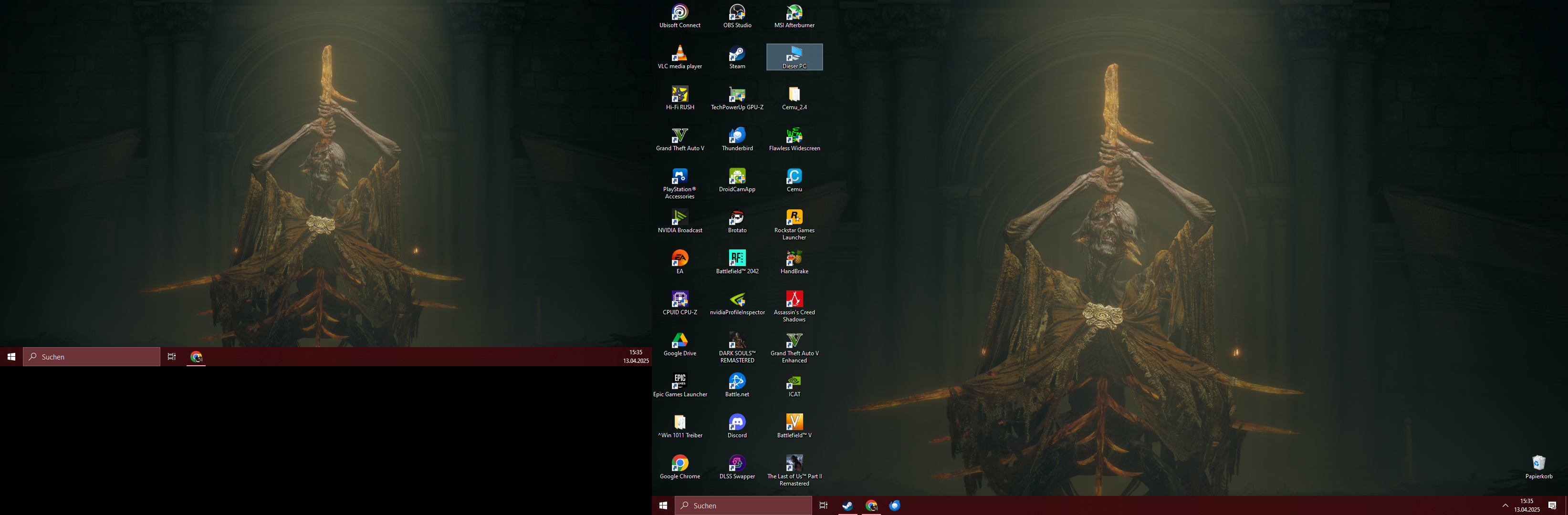 Ansonsten habe ich einen Ordner, in dem Links für alle Programme rein geschoben werden. Die meisten häufig genutzten Programme sind auch in der Taskleiste angepinnt, daher habe ich auf dem Desktop sonst nur ein paar Sachen die ich temporär da liegen habe weil ich die grade für etwas relevant halte.