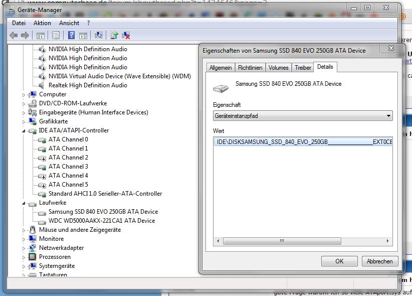 Also im Gerätemanager wenn man auf die Festplatte auf eigenschaften, Details und die Eigenschaft Geräteinstanzpfad auswählt dann steht da was von IDE wie auf dem Bild zu sehen.