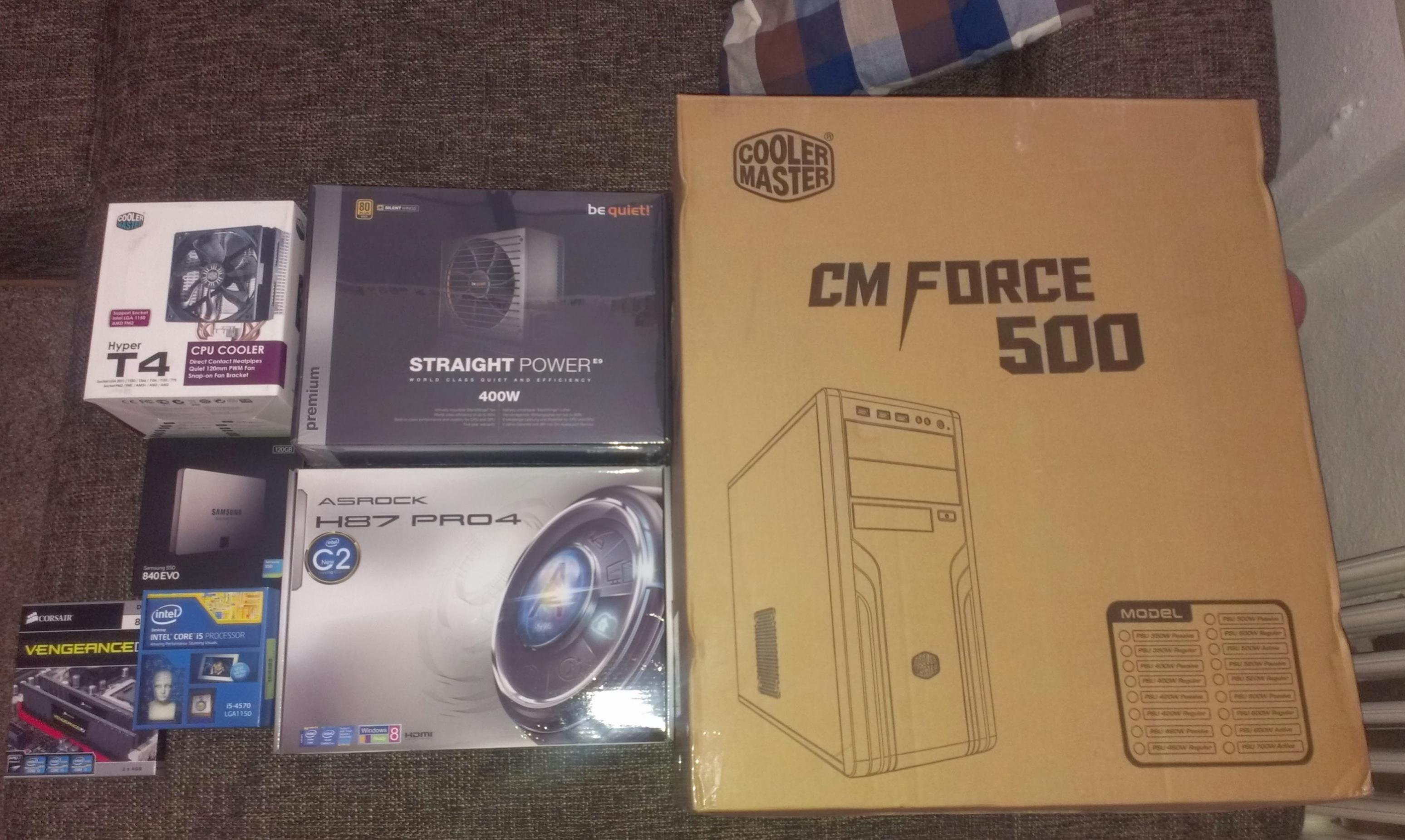 Damit ich auch mein Versprechen halte, hier mal ein Bild von allen Komponenten, die mittlerweile angekommen sind.
