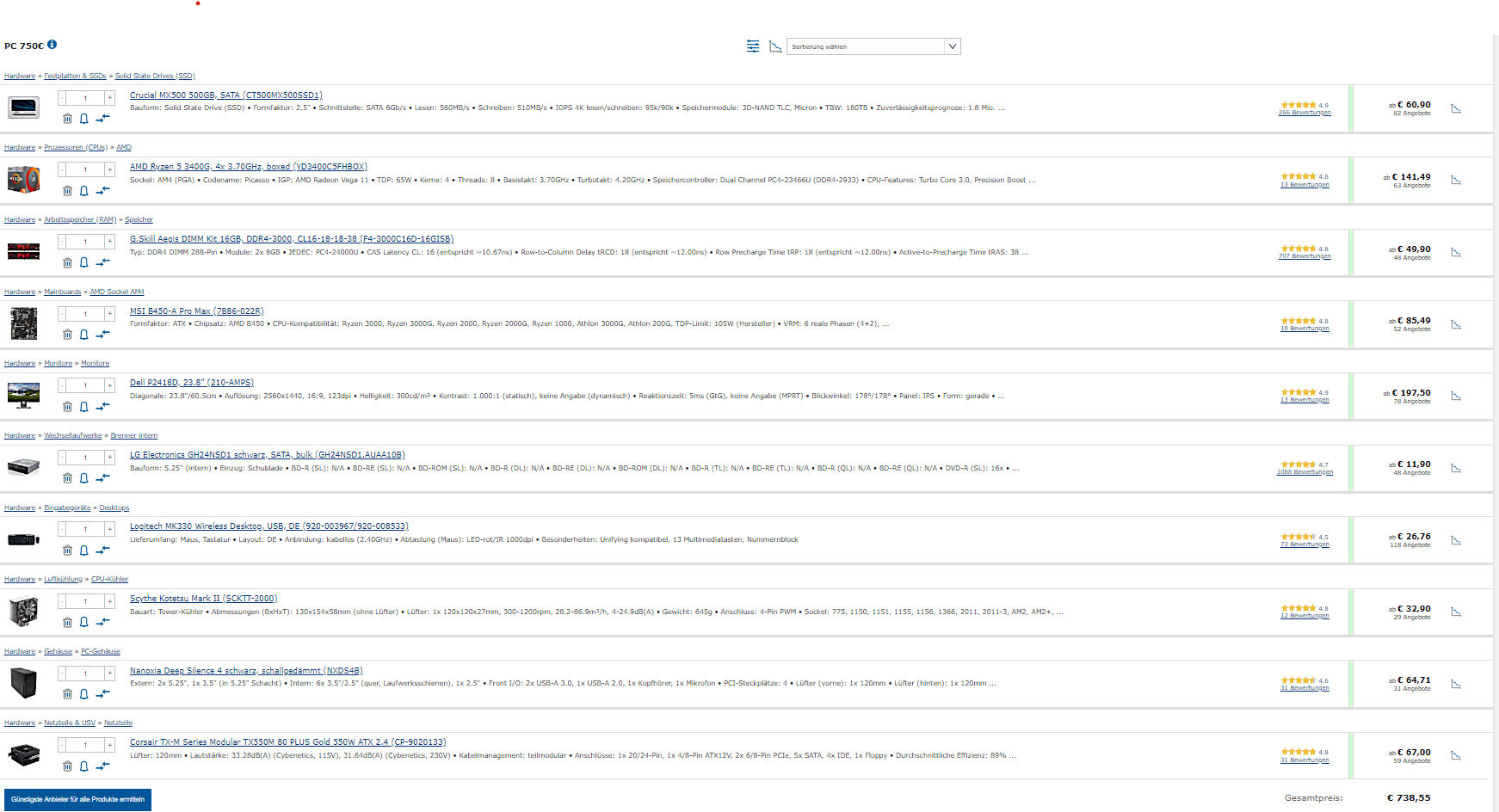 Ja, der Endpreis liegt etwas drüber, solltest du diese PC-Teile aber am Black Friday erwerben, so bin ich mir fast sicher, dass man den ein oder anderen Euro noch sparen kann und es letztlich auf die 750€ hinausläuft. Wie gesagt, das ist die