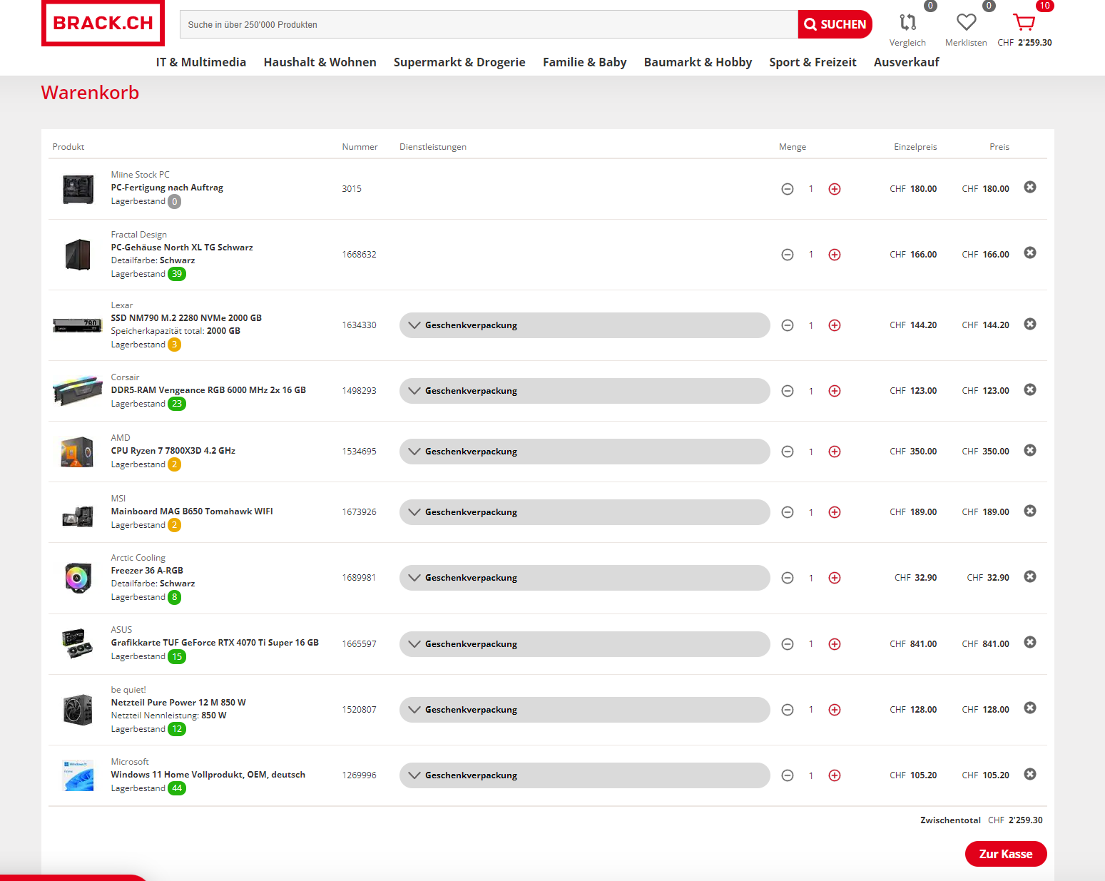 Aber wenn du bei Brack den PC bauen lässt, bist du so bei CHF2'259