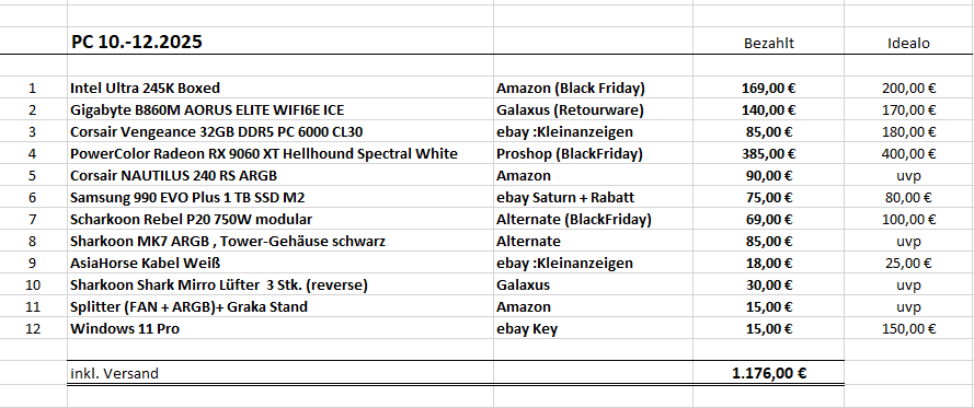 Ist aus purer Freude am Hobby entstanden, weniger weil ich es brauche, ansonsten hätte ich meinen Desktop-PC (siehe Signatur) aufgerüstet und mir statt der 8GB 9060XT wirklich die 16GB Variante gegönnt.