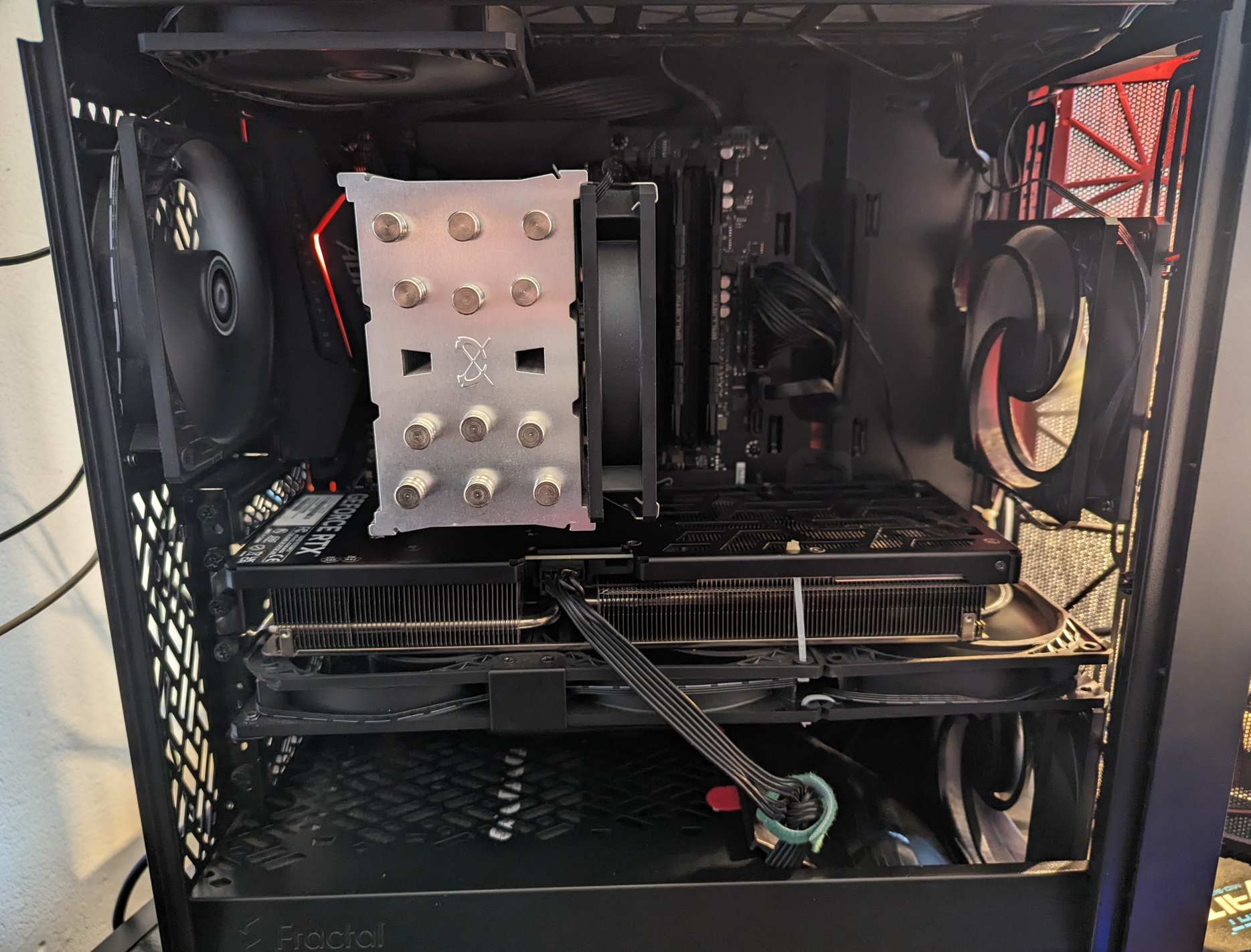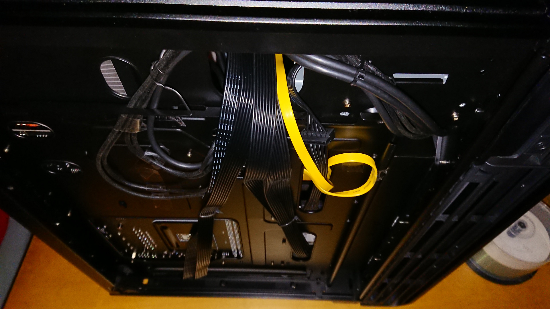 Da ich ne Arctic AiO nutze, mußte ich es vorab entkernen, was aber keine große Bastelei ist. Ich hab das Gehäuse gewählt, weil ich nach Jahren mit dem Temjin TJ08-E und microATX wieder auf normales ATX wollte und das sollte platzmäßig nicht zu eng werden. Also hab ich ein bissel überdimensioniert. Paßt grad so unter den Schreibtisch.