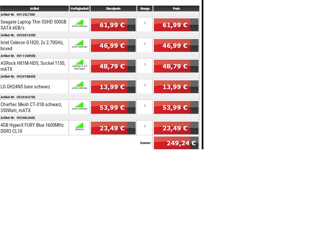 Habe mich an dem Leitfaden orientiert und kam auf rund 250 Euro. Würde das am liebsten bei Hardwareversand bestellen und gleich auch zusammen bauen lassen. Budget kann so auch noch bis + 100€ mehr gehen.