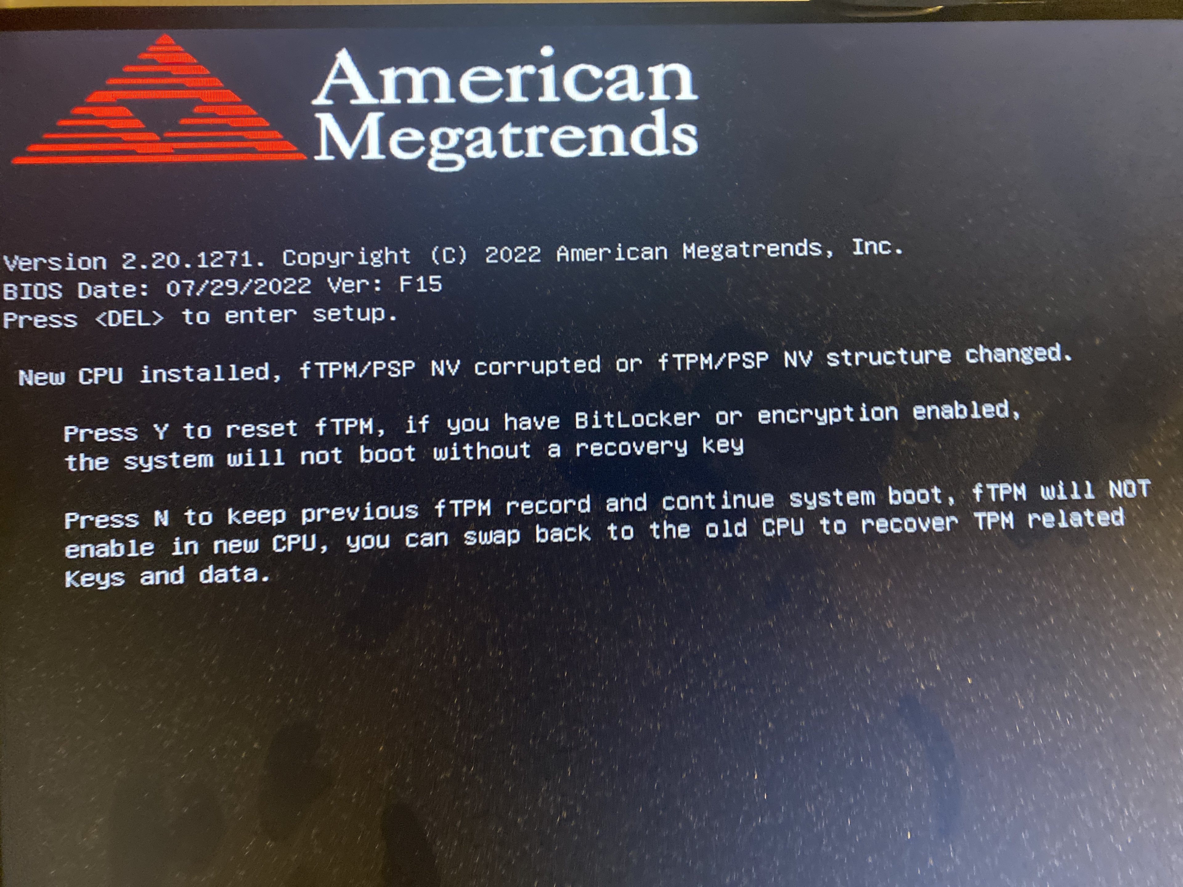 Hab grad alles zusammengebaut und beim ersten Test ging er auch an, aber nach F8 druecken kommt das daher: