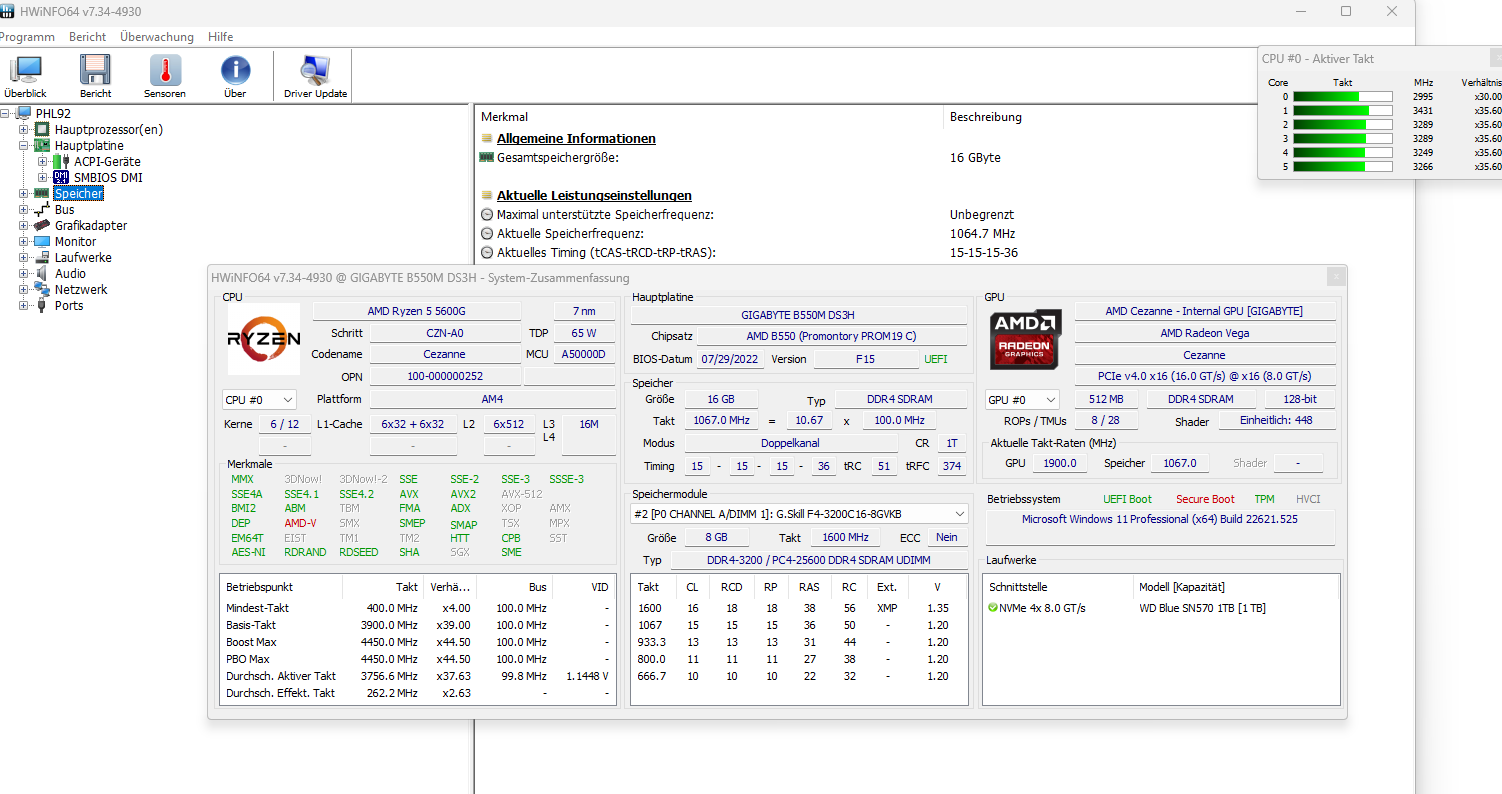 Und wenn ich weiter ins Bios gebe wird mir eigentlich alles richtig angezeigt, also die Komponenten scheinen zu funktionieren.