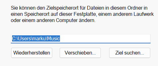 - Klick auf Wiederherstellen: der Pfad wird auf "C:\Users\Dein Benutzername\Video" geändert