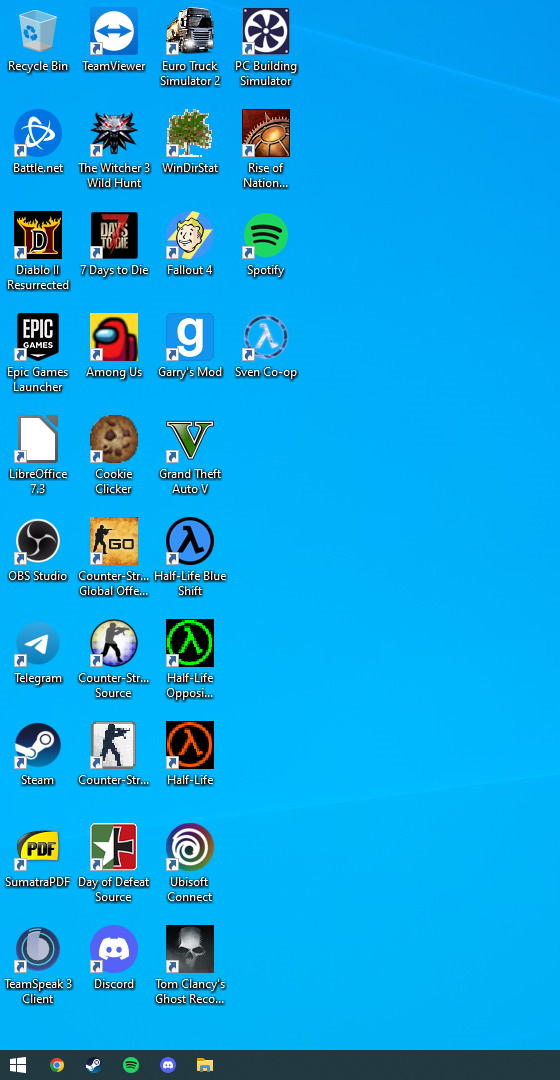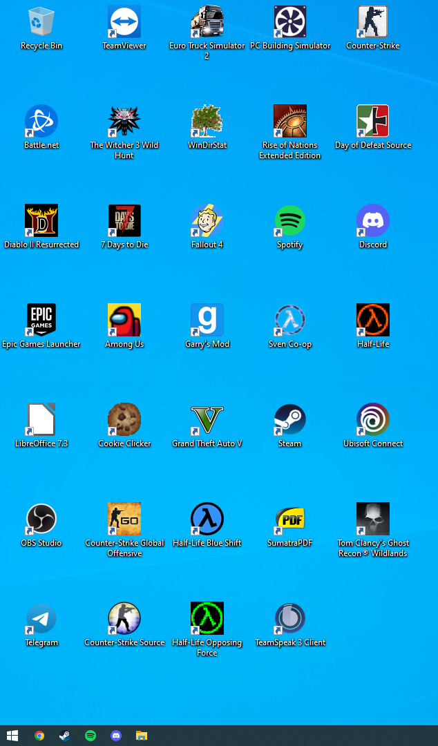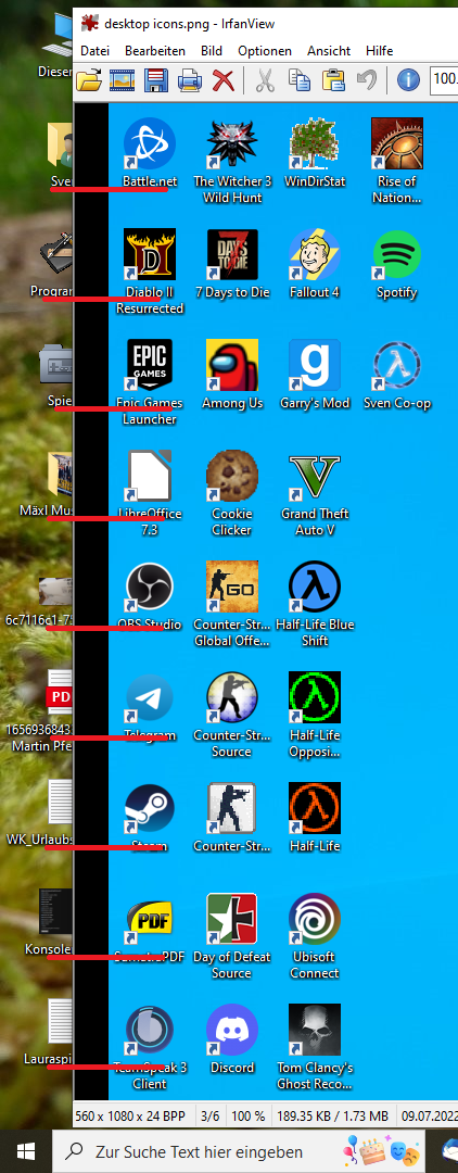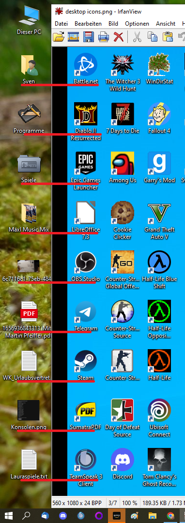 ich habe gestern Windows 10 neu installiert und irgendwie habe ich das Gefühl da stimmt etwas mit meinen Desktopsymbolen nicht (siehe Bild). Ich bin mir sicher, dass da normalerweise mehr Platz zwischen den Icons ist, so nah beieinander habe ich das glaube ich noch nie gesehen. Ich wüsste auch gar nicht wie das zustande gekommen sein könnte oder wo es dazu eine Einstellung geben könnte die ich vielleicht versehentlich verstellt habe.