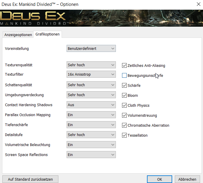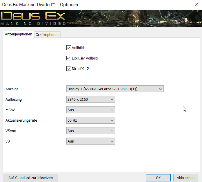 Die Performance von Deus Ex ist eh unter aller Kanone, gerade in den Dialogen sieht es mieser aus als viele Games vor 5 Jahren (selbst Crysis 1 sieht da teils besser aus) und man kommt auf schöne 30FPS mit ner 980 TI OC. Toll gemacht.