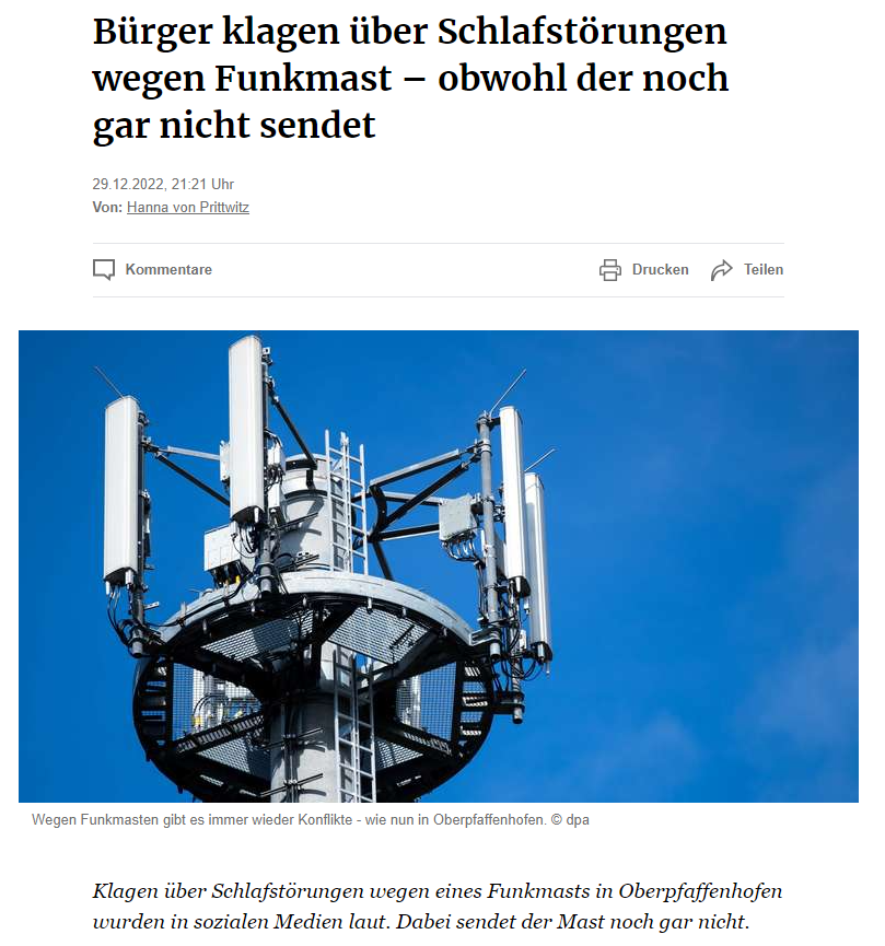 Bin gespannt welche angeblichen "Symptome" auftauchen werden. Ist ja immer wieder der Fall, irgendwo entsteht ein Mobilfunkturm und es gibt Beschwerden obwohl ein Mast nicht in Betrieb ist.