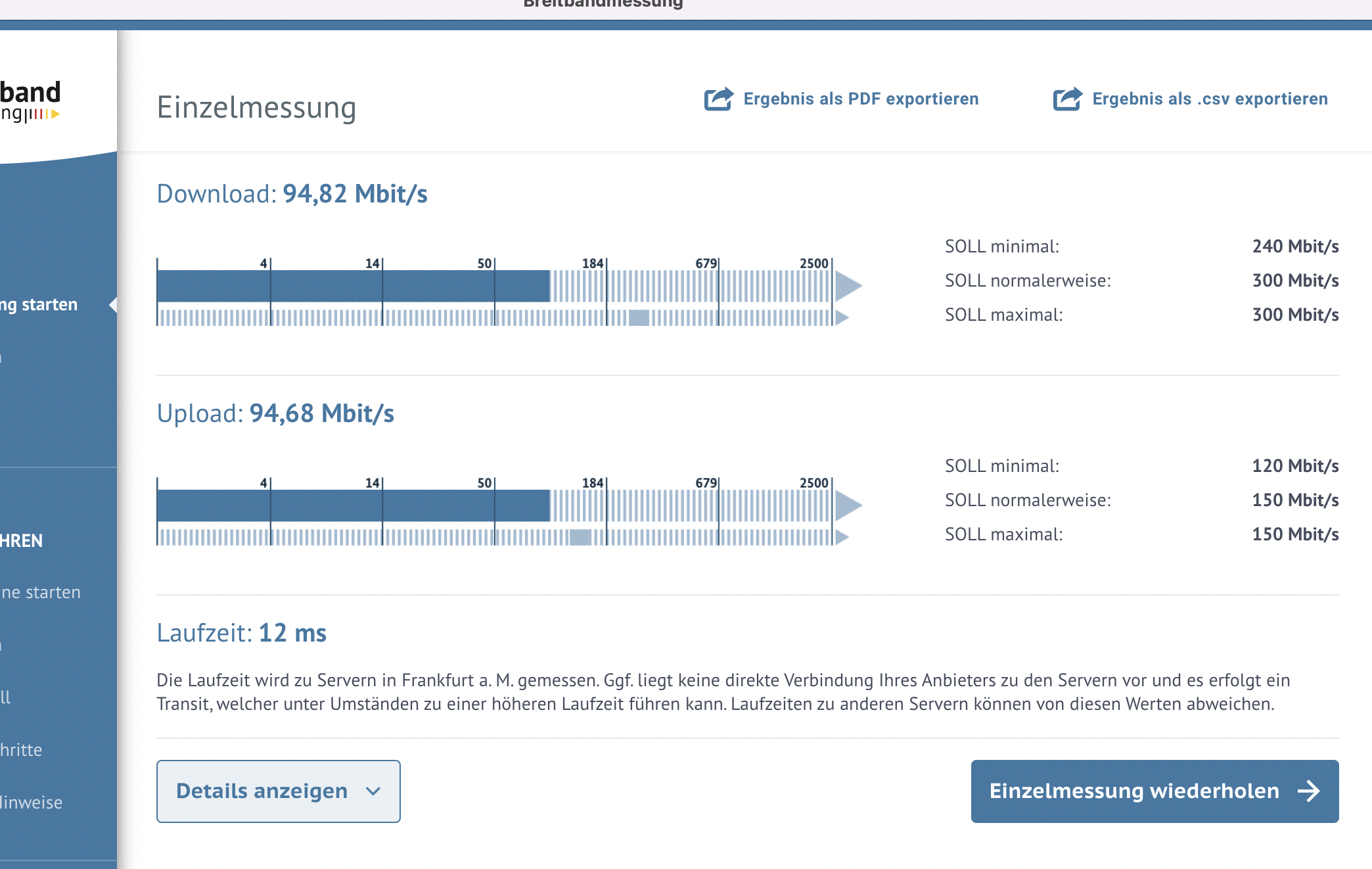 Sollten Sie hier ebenfalls eine Beeinträchtigung der Übertragungsgeschwindigkeit(en) feststellen können, nutzen Sie bitte die App der Bundesnetzagentur um möglichst genau die Störungen zu protokollieren. Mit der Übermittlung des Protokolls aus der App mit