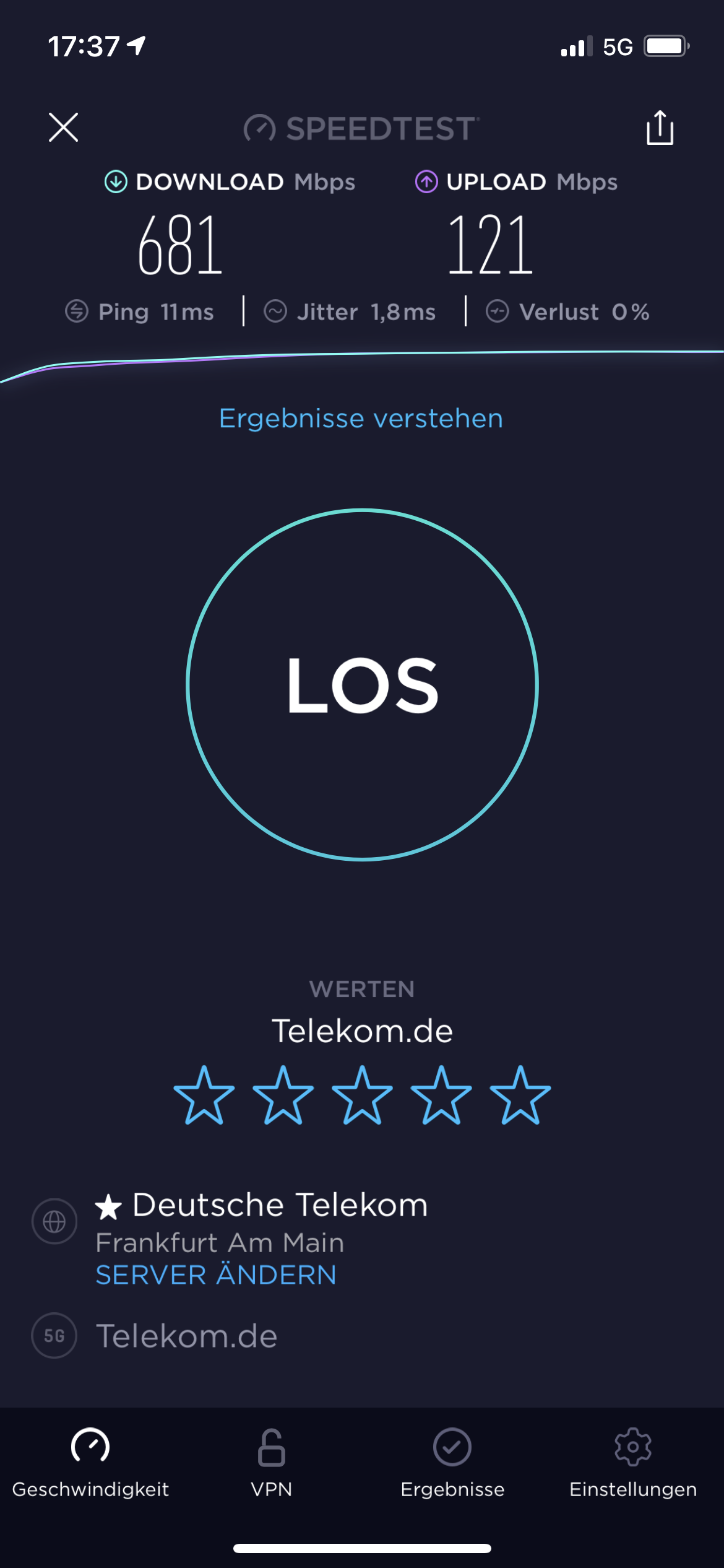 1x 90 MHz bei 3500 MHz --> Hier wird 5G-only gefahren (Bis zu 1 Gbit/s)