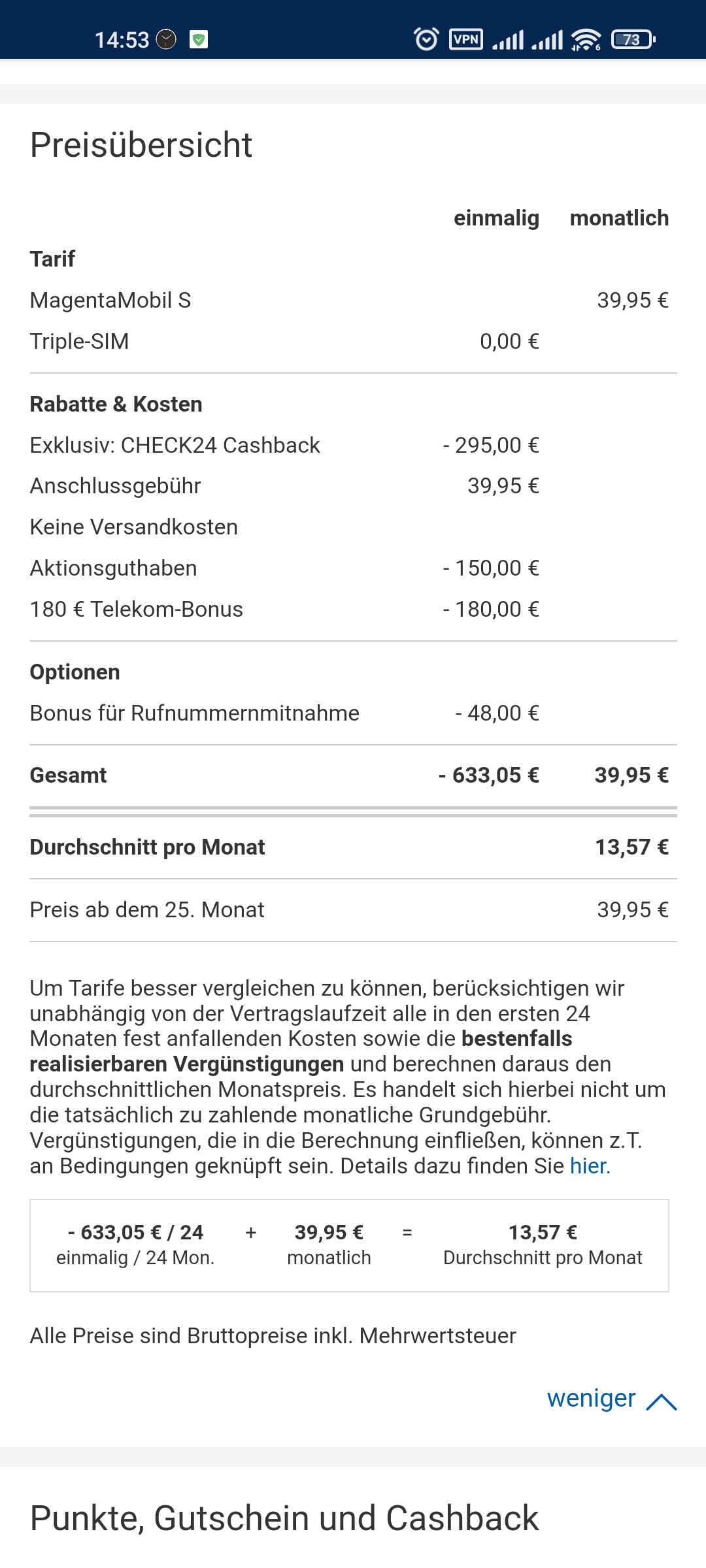 Ja, genau das meine ich. Sieht nach Neukundentarif aus + Zeug mit Amazon + Verrechnung von Guthaben usw. das ist halt für mich kein "hab Magenta S für 10€ abgeschlossen" sondern schöngerechnet. ^^