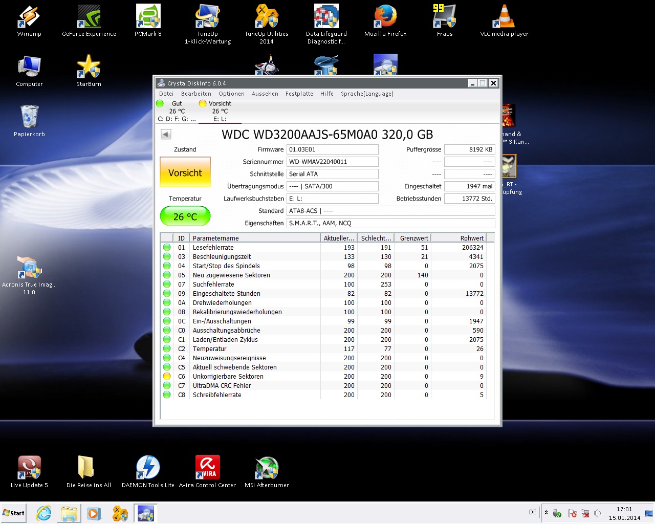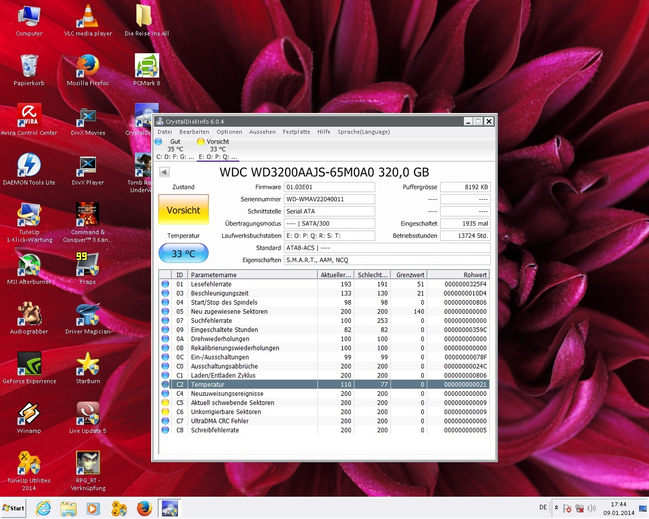 das ist der aktuelle screenshot und bei c6 bleibt es noch, das einzige was ich gemacht habe, die platte partioniert, nachdem der quick test und extended test von dem wd diagnostictool abgeschlossen war und ohne fehler beendete.