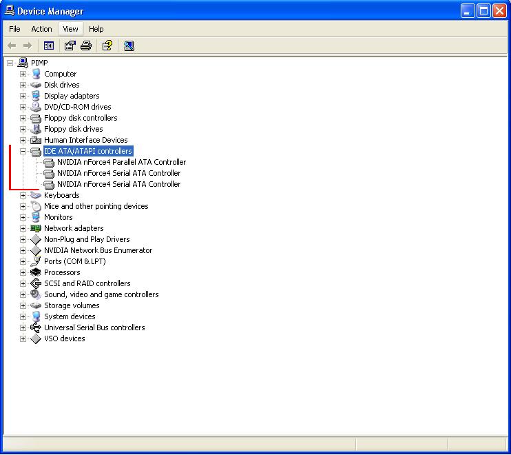 aber im Device manager steht unter IDE AtA/..... keine Einträge für "IDE Controller"