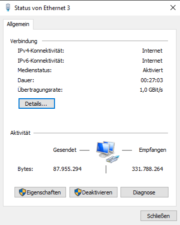 Im Devolo Cockpit werden mir beide Adapter angezeigt mit Sehr Guter Verbindung (250-350 Mbit/s), im Netzwerkadapter am PC ist die Verbindung auch als Gigabit deklariert, im Router steht auch der LAN Port auf 1 Gigabit. Allerdings sind im Download wie schon gesagt nur 100K-110K Möglich. Wenn ich mit meinem Notebook per WLAN direkt neben dem Router bin und den Speedtest Starte, habe ich dort ein excellentes Ergebnis mit 340K im Download und 20K im Upload (Der Upload wird auch auf meinem PC erreicht). Jetzt stellt sich mir nur noch ein weiteres mal die Frage.. Woran kann es liegen???