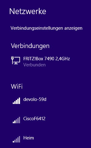 Unter Netzwerke wird mir nur devolo-59d angezeigt.