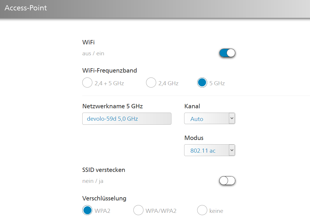 Ich müsste ja normalerweise zwischen dem 2,4 und 5 GHz-Band auswählen können.