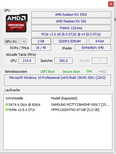 - AMD RX 550X - 2GB (dedizierte Grafikkarte)