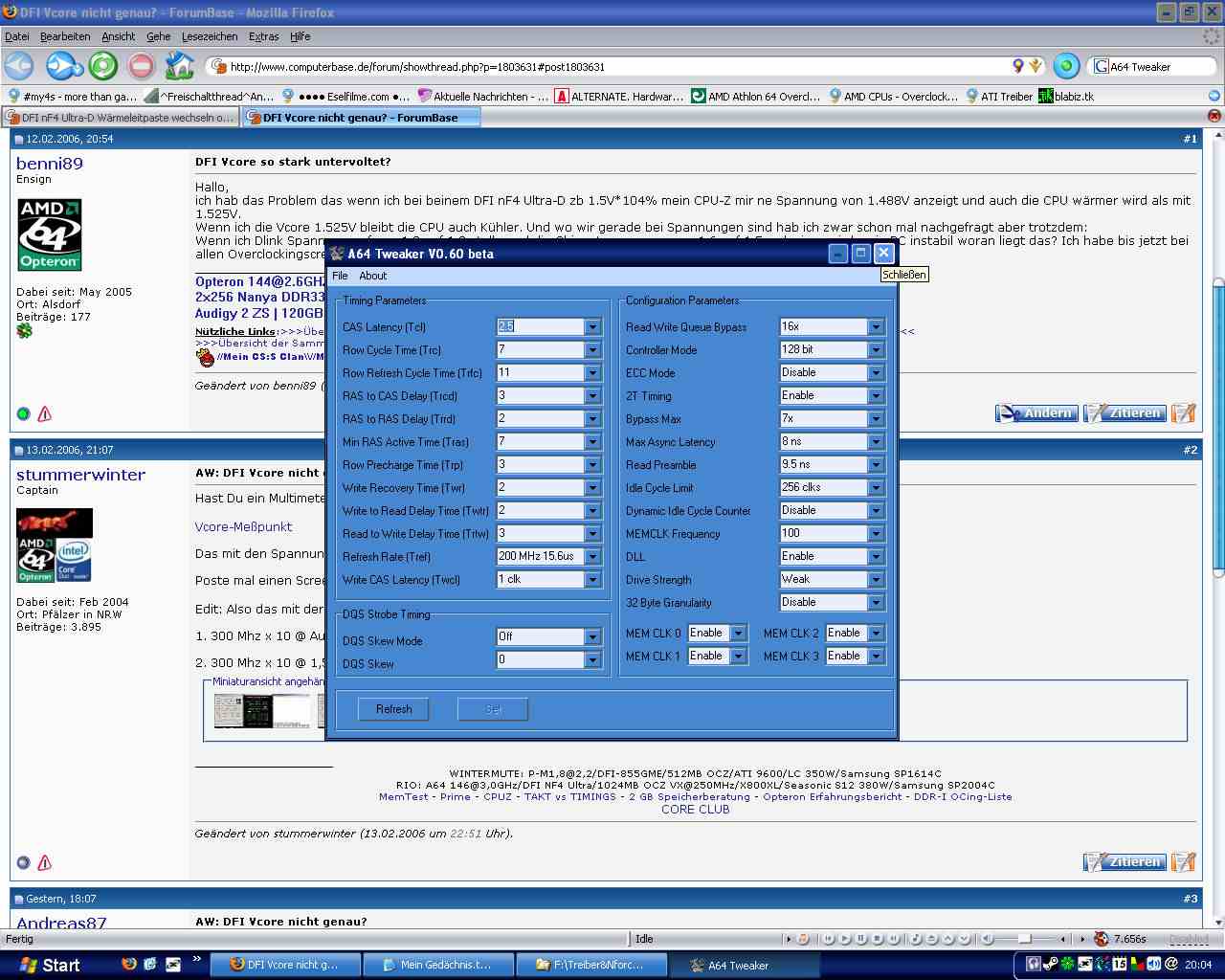 ich hab das Problem das wenn ich bei beinem DFI nF4 Ultra-D zb 1.5V*104% mein CPU-Z mir ne Spannung von 1.488V anzeigt und auch die CPU wärmer wird als mit 1.525V.