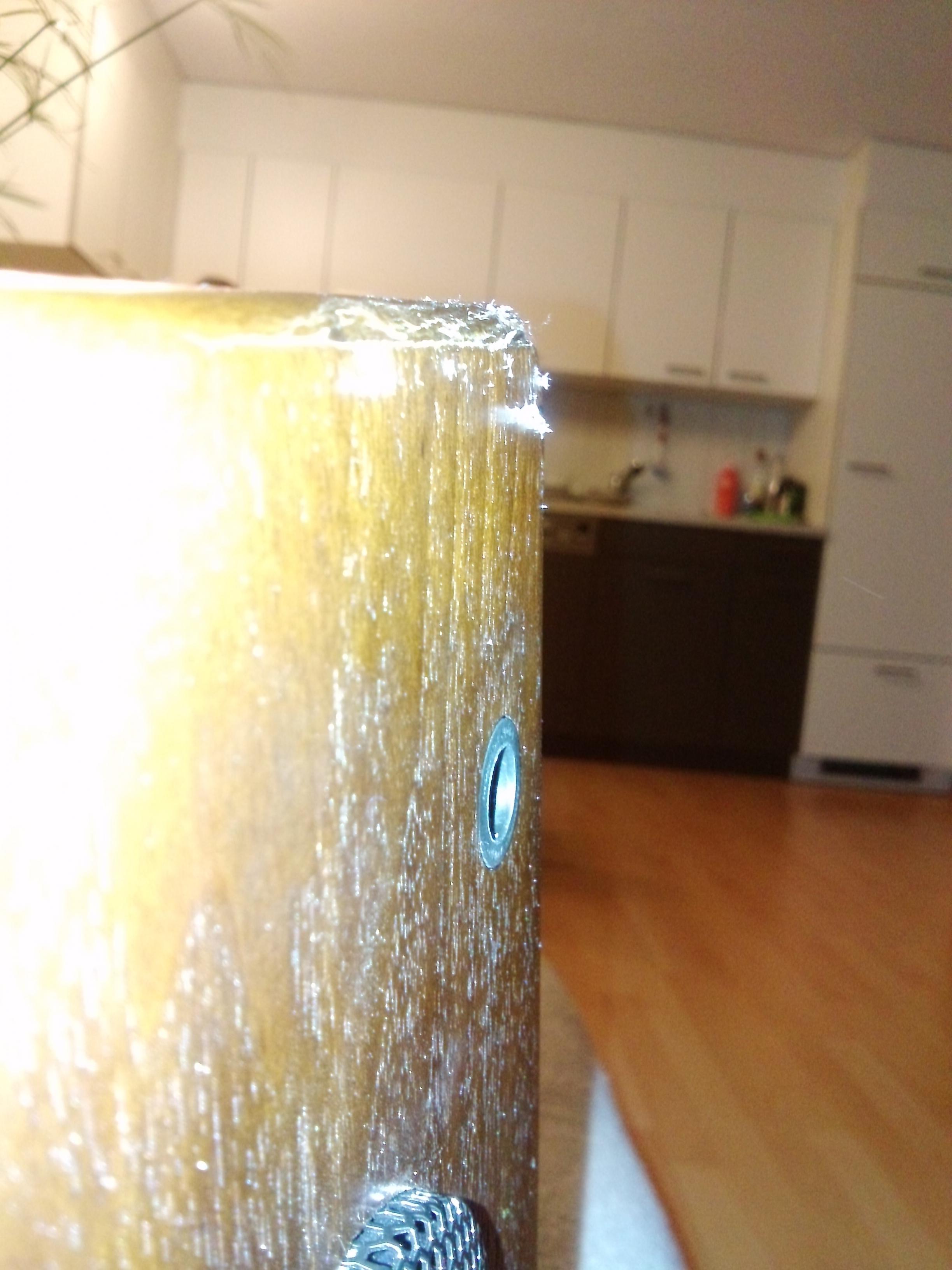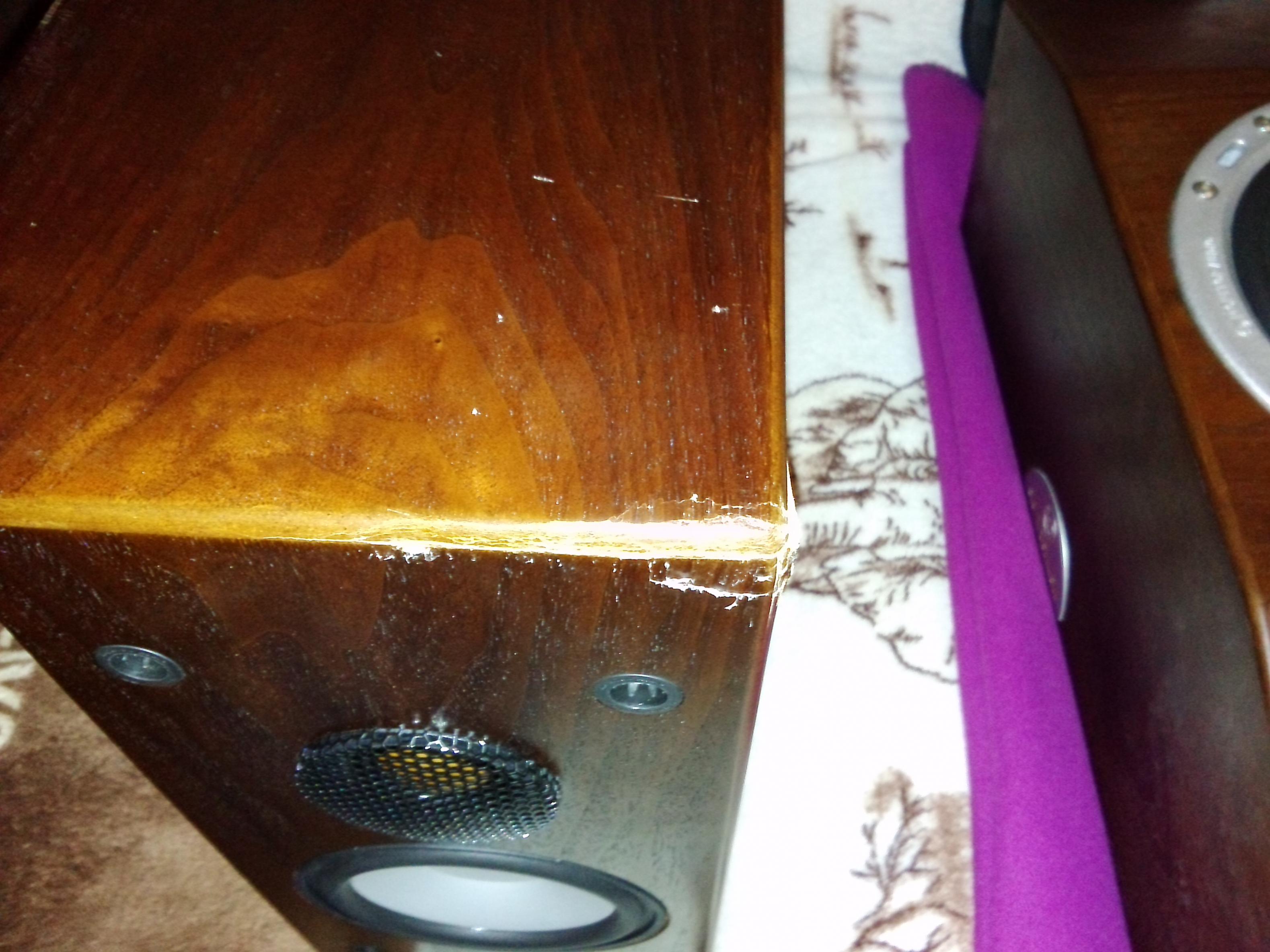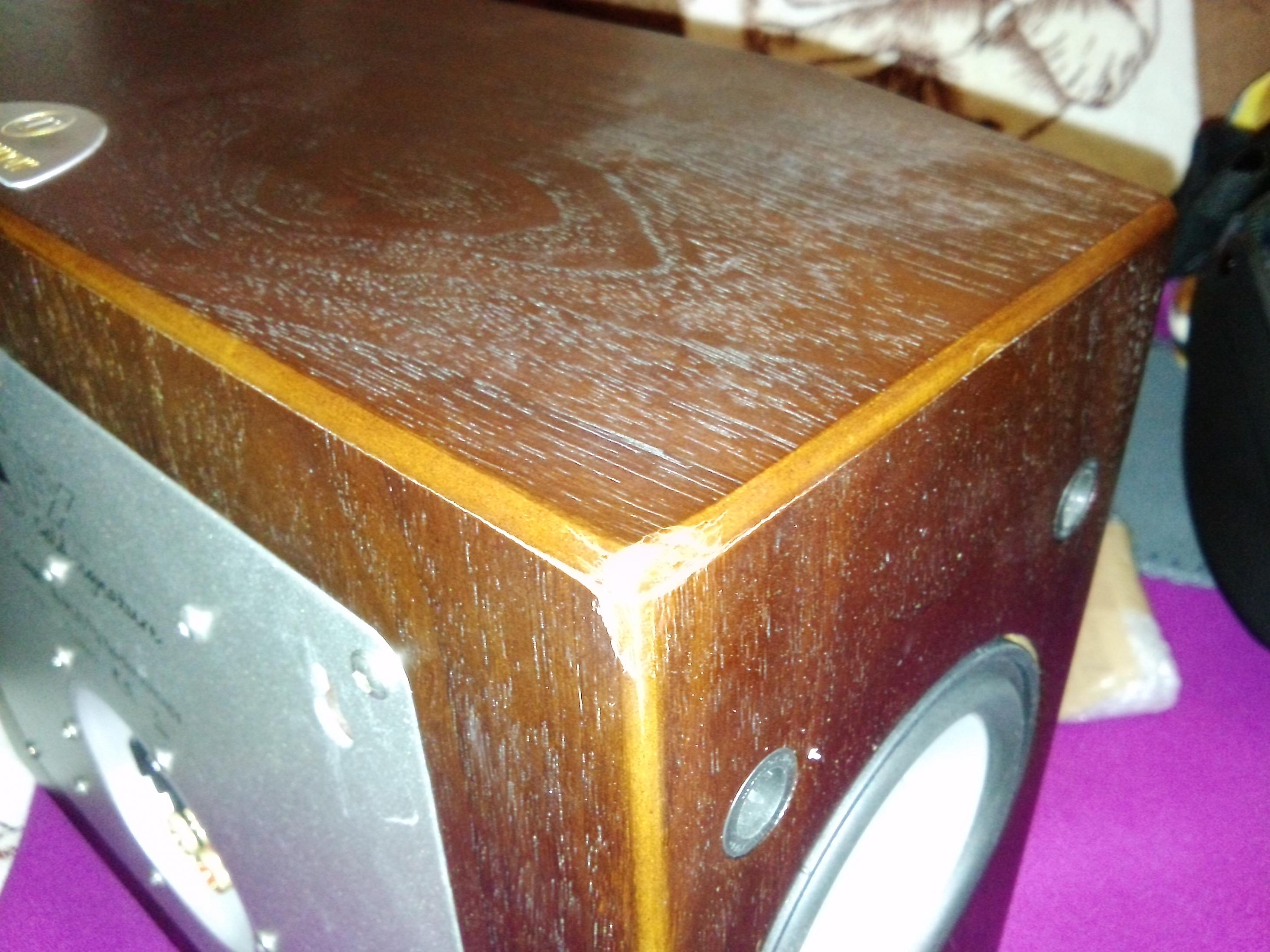 Wie auf den Bilder zu sehen, sind jeweils die Kanten der Lautsprecher stark beschädigt.