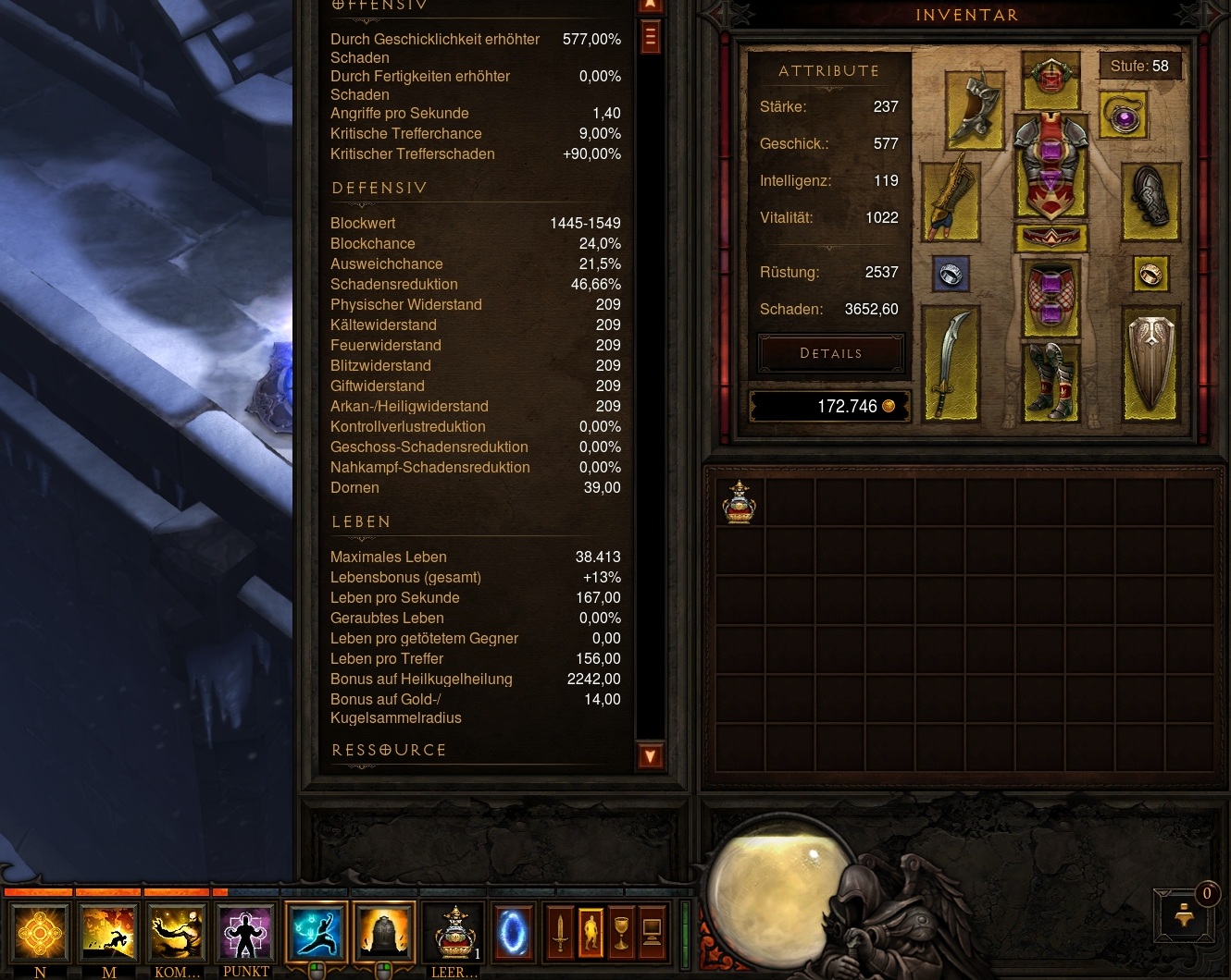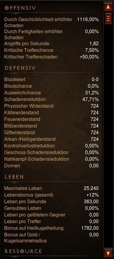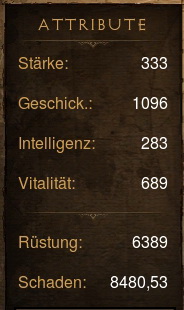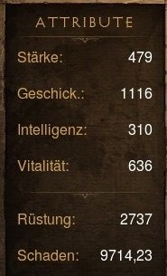 Meine Stats findet ihr in den Grafiken. Bei den Builds habe ich schon etliche probiert, allerdings liege ich trotzdem zu schnell im Dreck, egal welche Skills ich nehme. Die Stats-Shots wurden jedoch mit Mantra Of Healing gemacht.