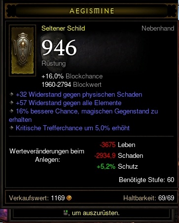 Daher halte ich ich es persönlich für wichtiger, Lebensregeneration auf den Items zu haben oder gar Stärke. Jeder Punkt in Stärke gibt einen Punkt in Rüstung. Nice to have aber meist unbezahlbar oder nur selten zu kriegen sind "-4% Schaden durch Nah-/Fernkampf", "Chance auf kritische Treffer um x erhöht", "Schaden kritischer Treffer um x erhöht", "schnellere Bewegungsgeschwindigkeit", "erhöht die Blockrate um x %" usw. usw.