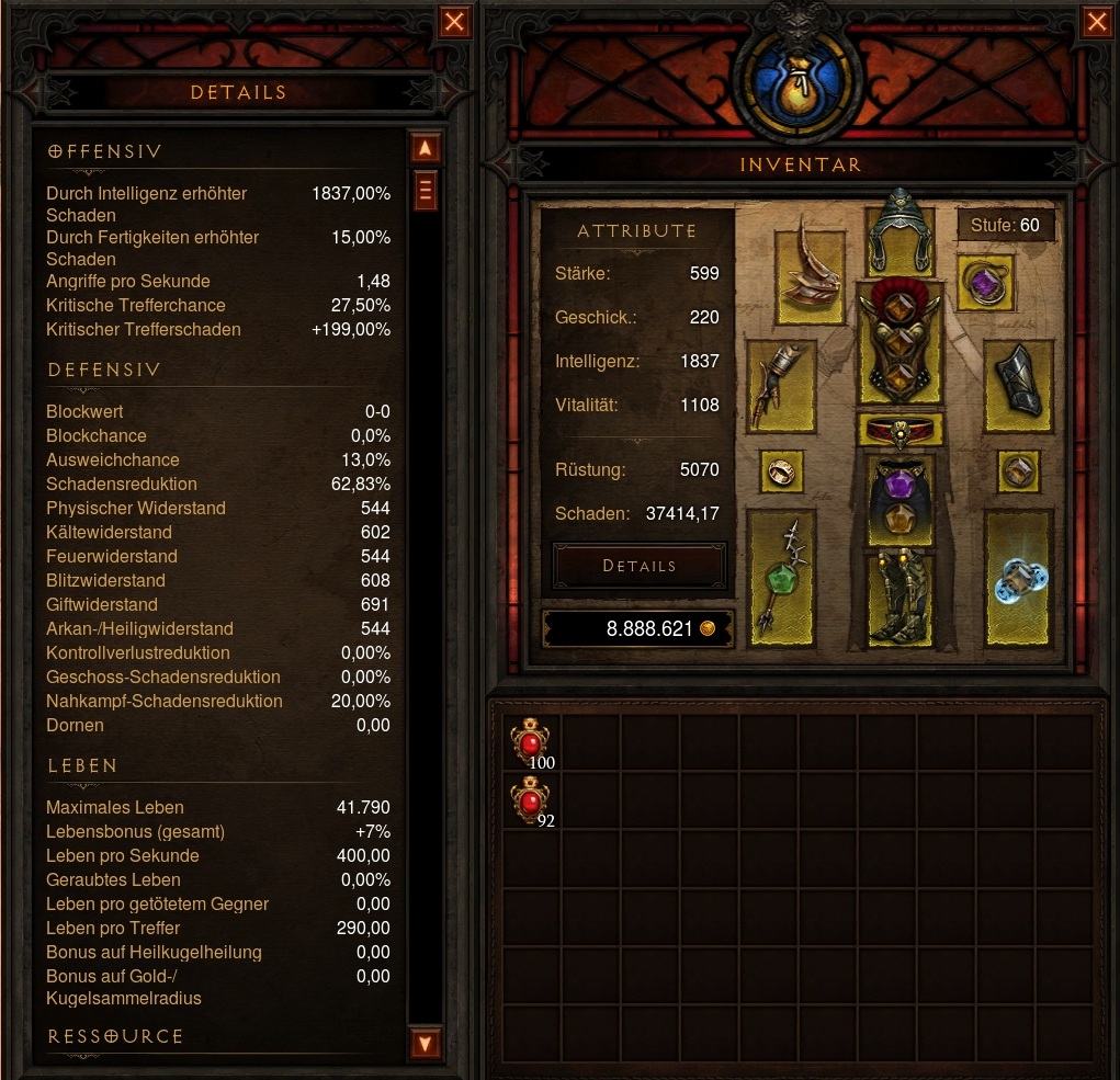 Achja ich habe z.b. nur einen 900 Dps bogen komme aber trotzdem mit 100% Crit Chance auf 183k Dps. Viele glauben immer "hauptsache VIEL dps auf der Waffe" aber das ist absolut falsch!