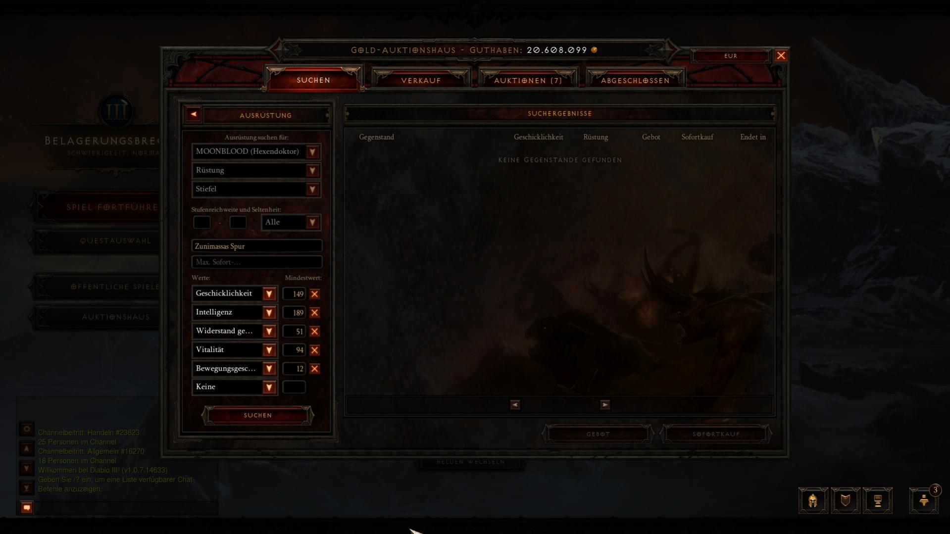 Hallo @All habe ein Paar Stiefel gefunden. Zunimassas Spur. Natürlich habe ich schon im AH nachgesehen und war verwirrt es gab nur ein Paar mit ähnlichen Stats und das kam so um die 300mio. dann habe ich mal im EAH nachgesehen und habe ähnliche Stiefel um die 250€ gesehen.