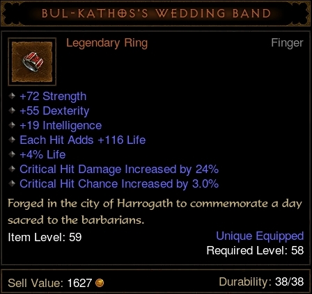Irgendwann? Nach 200h Playtime (mit drei 60ern, 1x Akt 2 Inferno, 2x Akt 3 Inferno) hab ich gerade mal drei Legendarys und eine handvoll "gute" gelbe Items gefunden.