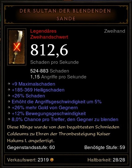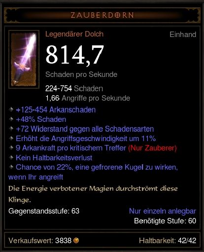 Ich habe mich gefreut, dass mein mittlerweile drittes legendäre Item gedropped ist, aber leider scheint auch dieses nicht viel wert zu sein Da ich aber keinen Zauberer spiele und dementsprechend auch keine wirkliche Ahnung habe, ob die Werte nicht doch ganz ordentlich sind, wollte ich gerne einmal eine Einschätzung zum zu erzielenden Preis für diesen Zauberdorn.