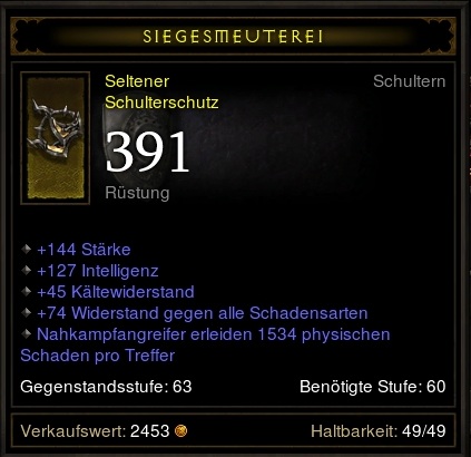 Hat denn keiner eine Idee was die Wert sein könnten, oder traut sich keiner? Mich würde das nämlich auch interessieren!Jirko schrieb:Ich würde gerne mal die beiden Zauberstäbe schätzen lassen. Der mit ~1080 DPS war mein alter Zauberstab, den ich jetzt verkaufen will, weil ich den mit ~1170 DPS "günstig" (?) im Ah gefunden habe.