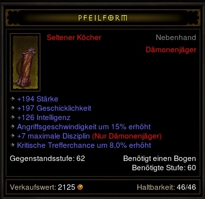 Für einen Twink gibt mal normal nicht soviel aus und da der Köcher kein Crit Chance oder Max. Diszi hat denke ich nicht sehr viel wert.
