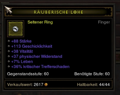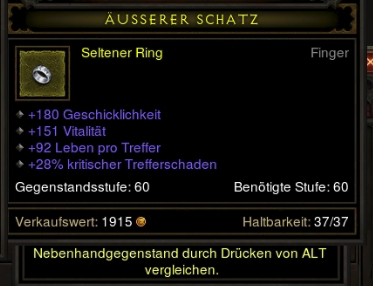Der Ring ist nicht viel besser als "Litany of the Undaunted". Vielleicht ein wenig, wegen +0.5 CC und mehr vita und extra Schaden (dafür aber weniger int) als man auf nem eher schlechten Undaunted Ring hätte aber naja.