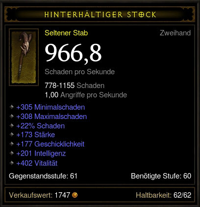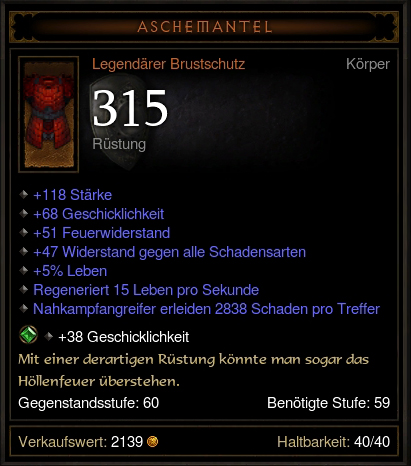 Ich denke ich bin mit meiner Hose gut genug ausgerüstet, dass sich der Aufpreis für deine nicht lohnt. Und ich hab nix davon, wenn ich auf einem Item auf Stats verzichte die ich brauche, um dann woanders wieder Stärke abbauen zu müssen um Ress dazu zu bekommen. Zumal in Summe (270) da auch nicht mehr Mainstats drauf sind als auf meiner aktuellen Hose. Interessant macht aus meiner Sicht die Hose eher die 10% Leben und die 20% MF.