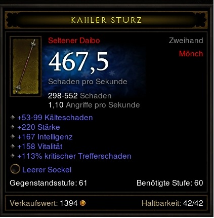dOM89DoM schrieb:Kann mir jemand einen vernünftigen Anhaltspunkt für dieses Amulett geben? Leider kein Main Stat und dazu noch relativ schlecht gerollte IAS/CC/CD, dafür aber ordentlich LoH - wenn letzteres nicht wäre hätte ich es für einen tiefen sechsstelligen Goldbetrag eingestellt.