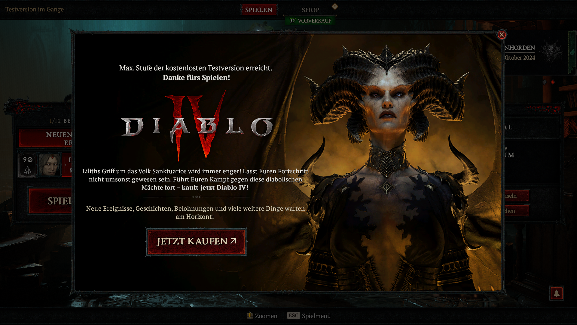 Also ich dann bei Diablo 4 auf ,, spielen geklickt habe,, steht jetzt ein neues Fenster mit der Meldung: