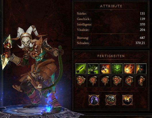 Attackmäßig komm ich mit der Seelenernte (in Kombi mit Geisterwanderer sehr einfach zu holen) auf 2000 DMG. Sonst bin ich bei ca. 12000 Life mit Lvl 44.