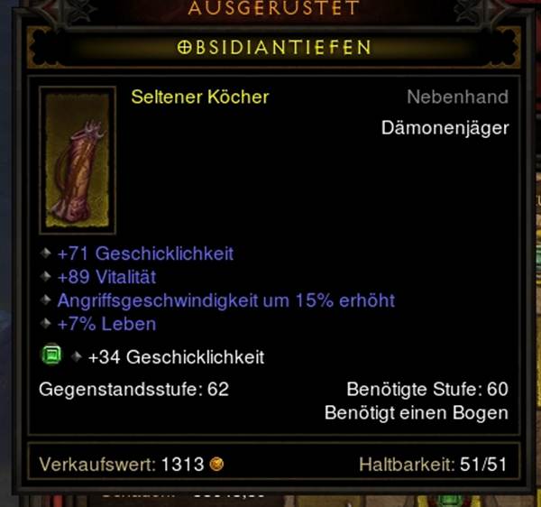 Mit knapp 60 Diszi und 3 Diszi/Sec. macht das schon Spass. 24% Bewegungsgeschwindigkeit auf dem Equip sind auch nicht zu verachten. Schattenkraft habe ich nur fuer reflektierten Schaden drin.