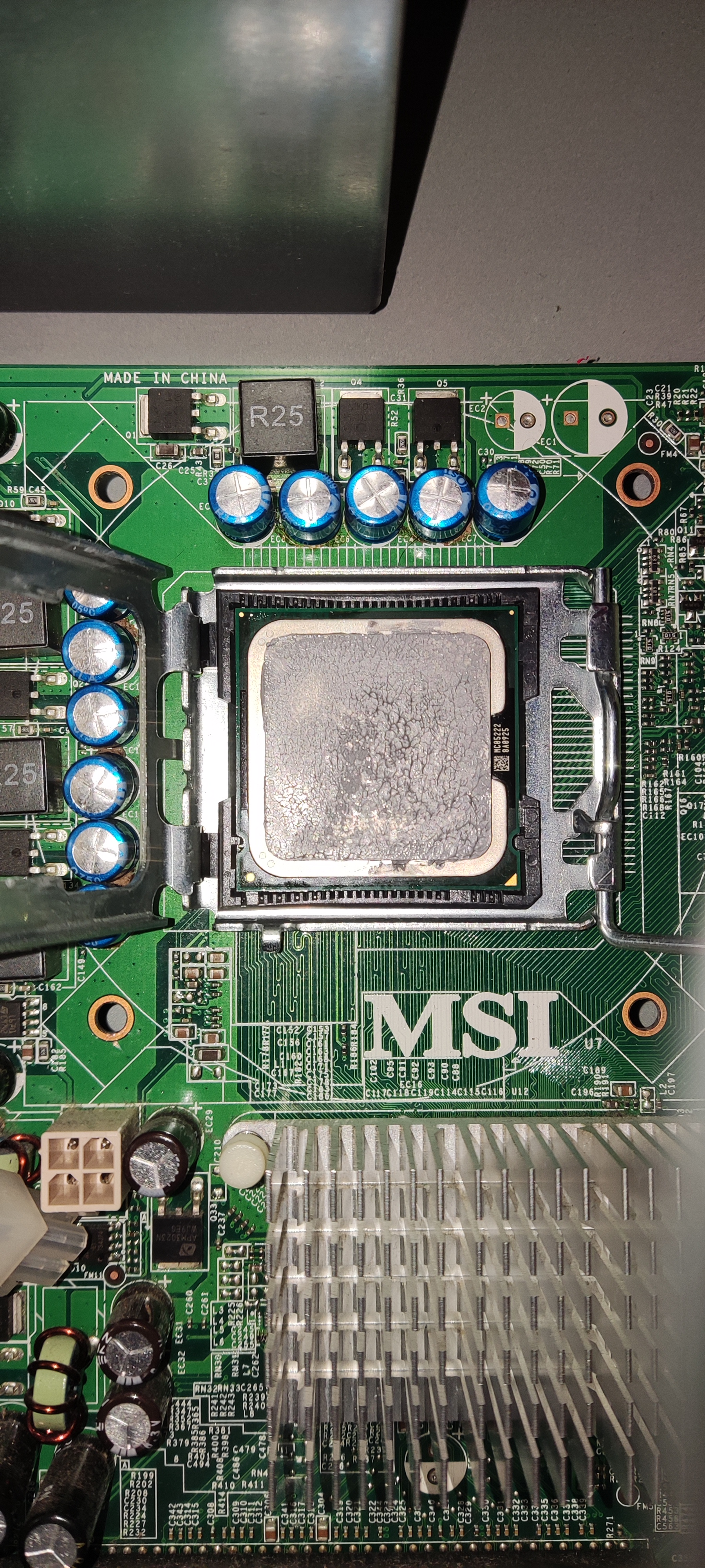 Platziert war eine Intel Core 2 Quad CPU von 2013, vermutlich nachgerüstet. Habe diese in einem anderen Rencher verbaut und die Intel Core 2 Duo des anderen Rechners nun beim aktuellen Patienten verbaut. Habe auch die Grafiken ausgewechselt sowie das Netzteil.